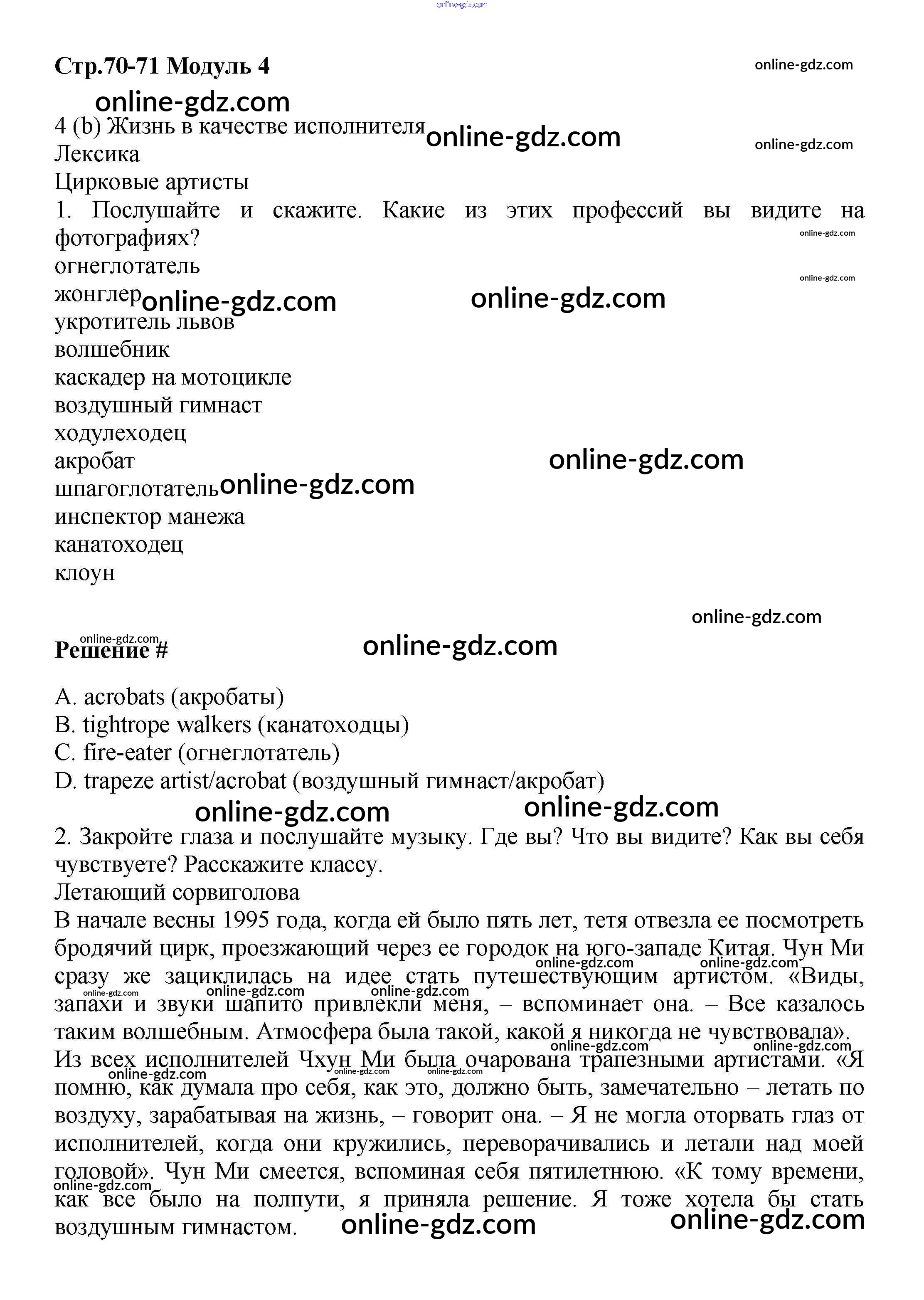 Готовые домашние задания по Английскому языку за 9 класс Учебник Баранова, Дули Starlight Углубленный уровень 2017 - Module 4. Art & Entertainment стр.70-71