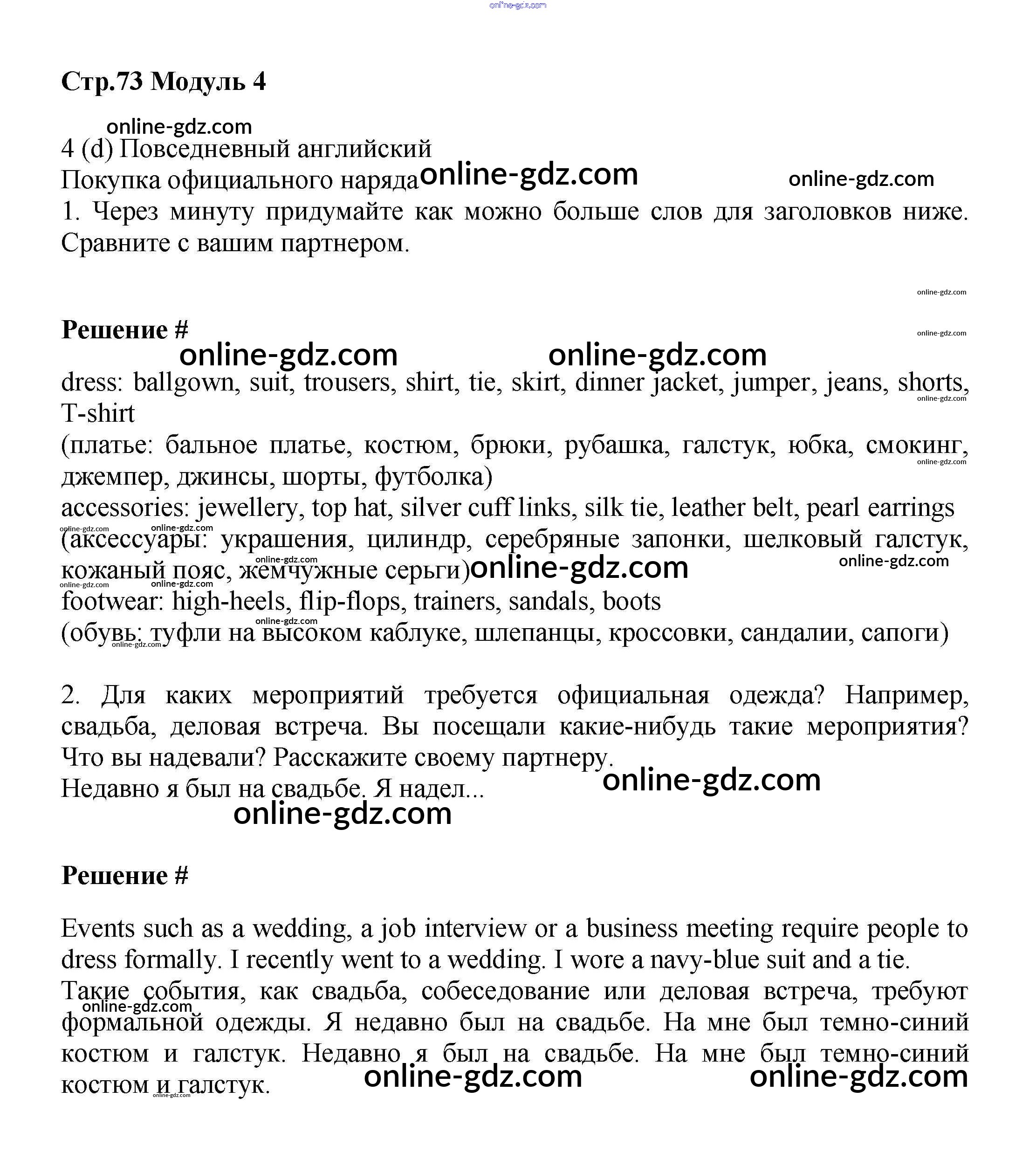 Готовые домашние задания по Английскому языку за 9 класс Учебник Баранова, Дули Starlight Углубленный уровень 2017 - Module 4. Art & Entertainment стр.73