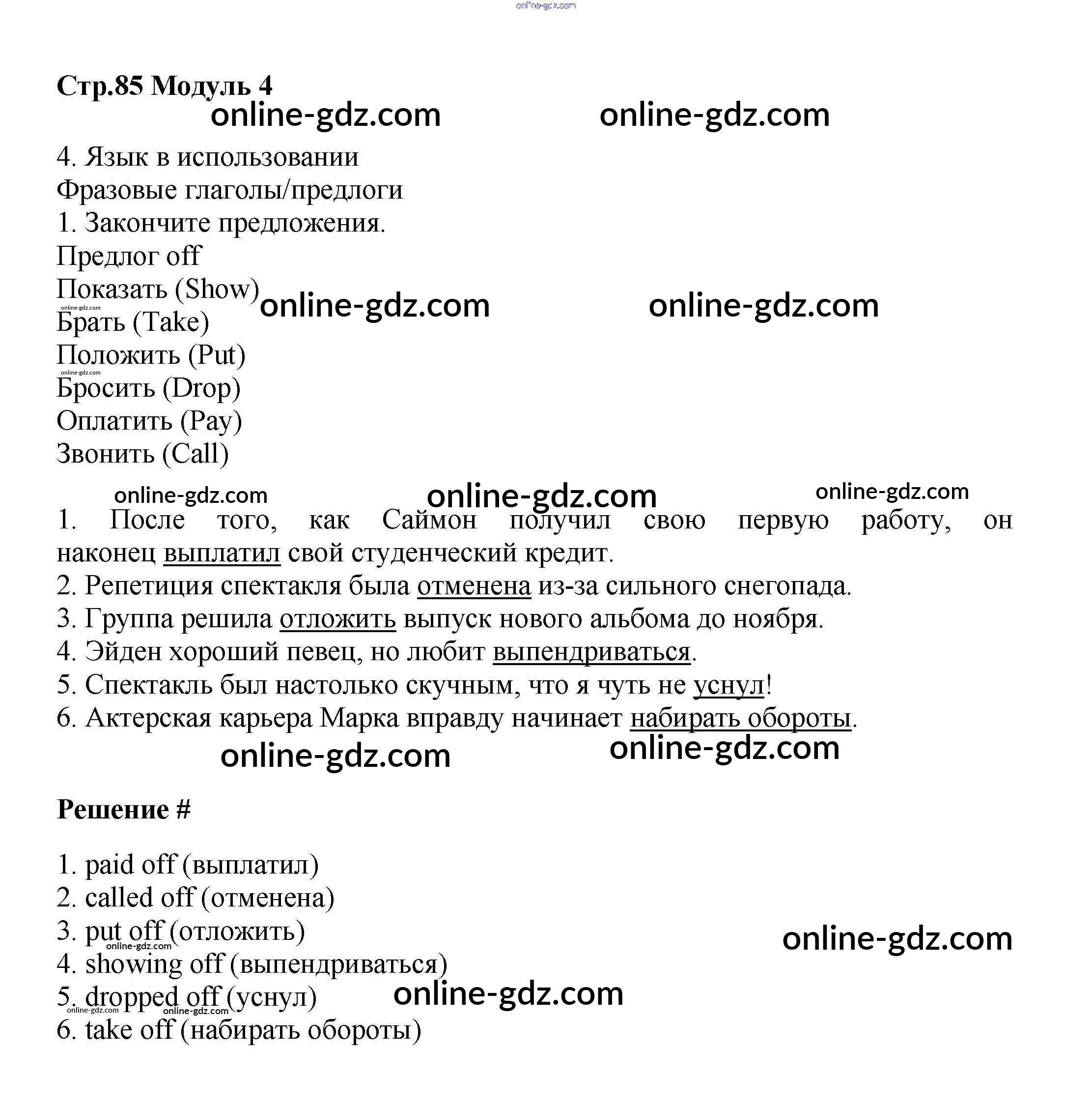 Готовые домашние задания по Английскому языку за 9 класс Учебник Баранова, Дули Starlight Углубленный уровень 2017 - Module 4. Art & Entertainment стр.85