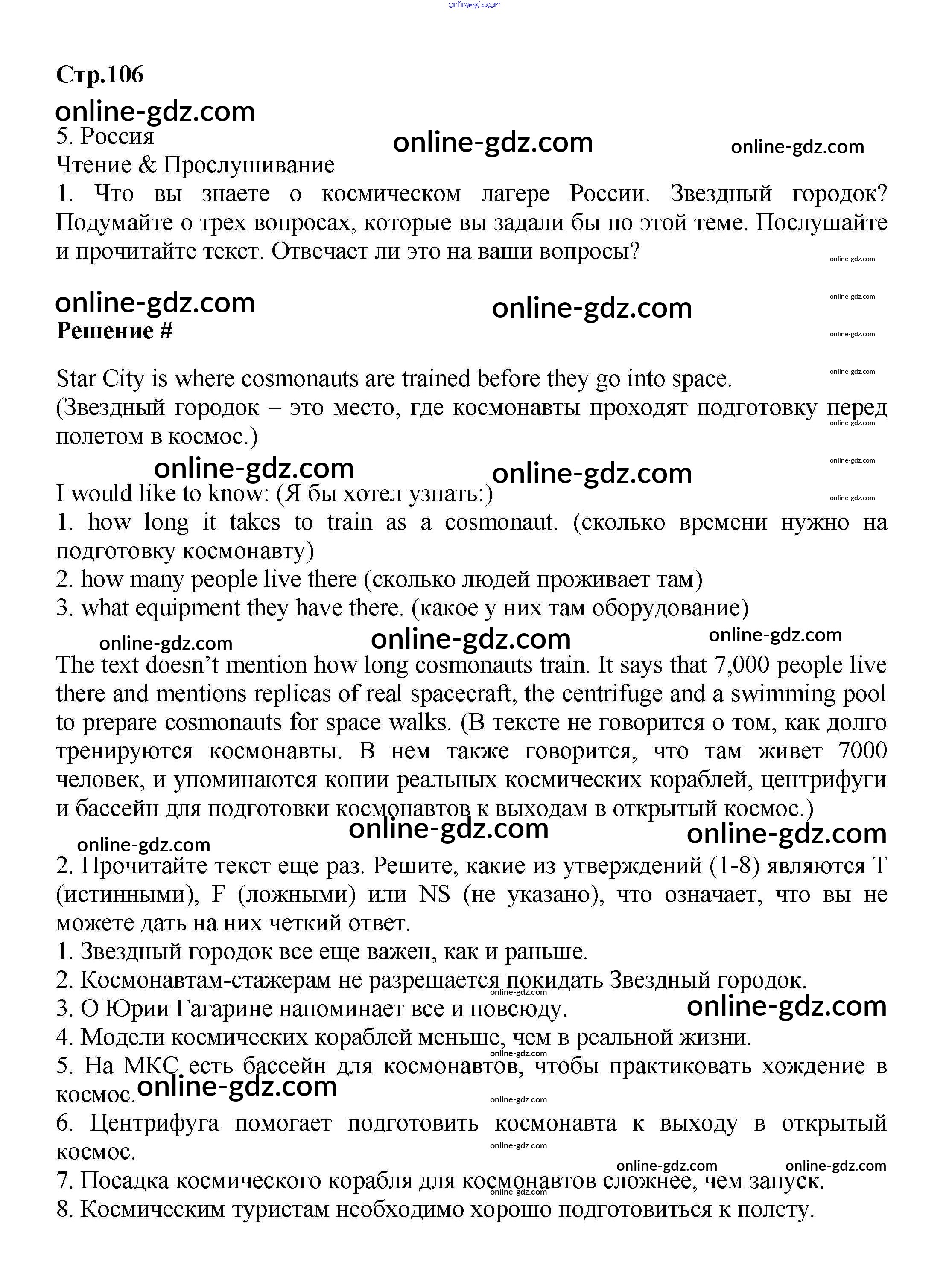 Готовые домашние задания по Английскому языку за 9 класс Учебник Баранова, Дули Starlight Углубленный уровень 2017 - Module 5. Breakthroughs стр.106