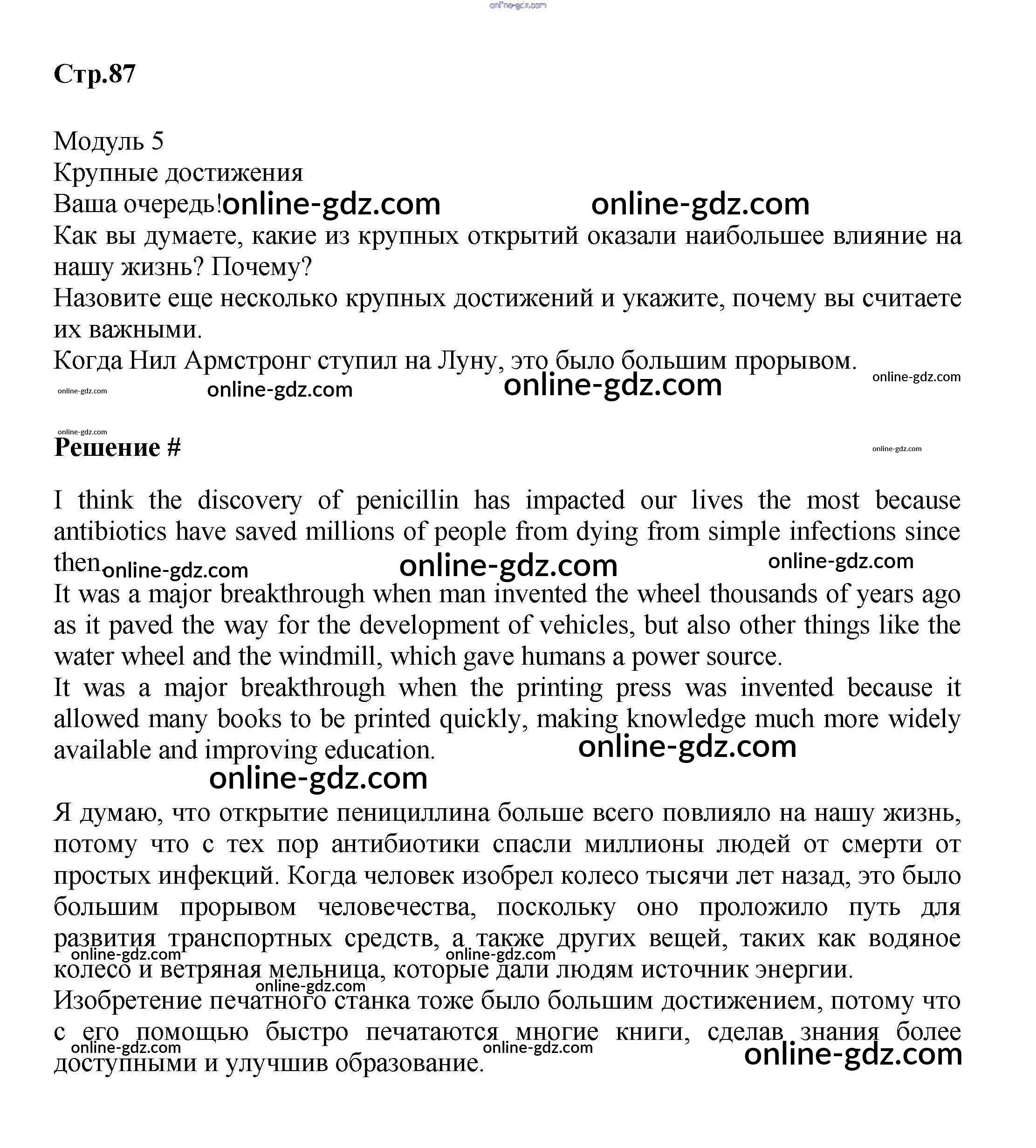 Готовые домашние задания по Английскому языку за 9 класс Учебник Баранова, Дули Starlight Углубленный уровень 2017 - Module 5. Breakthroughs стр.87
