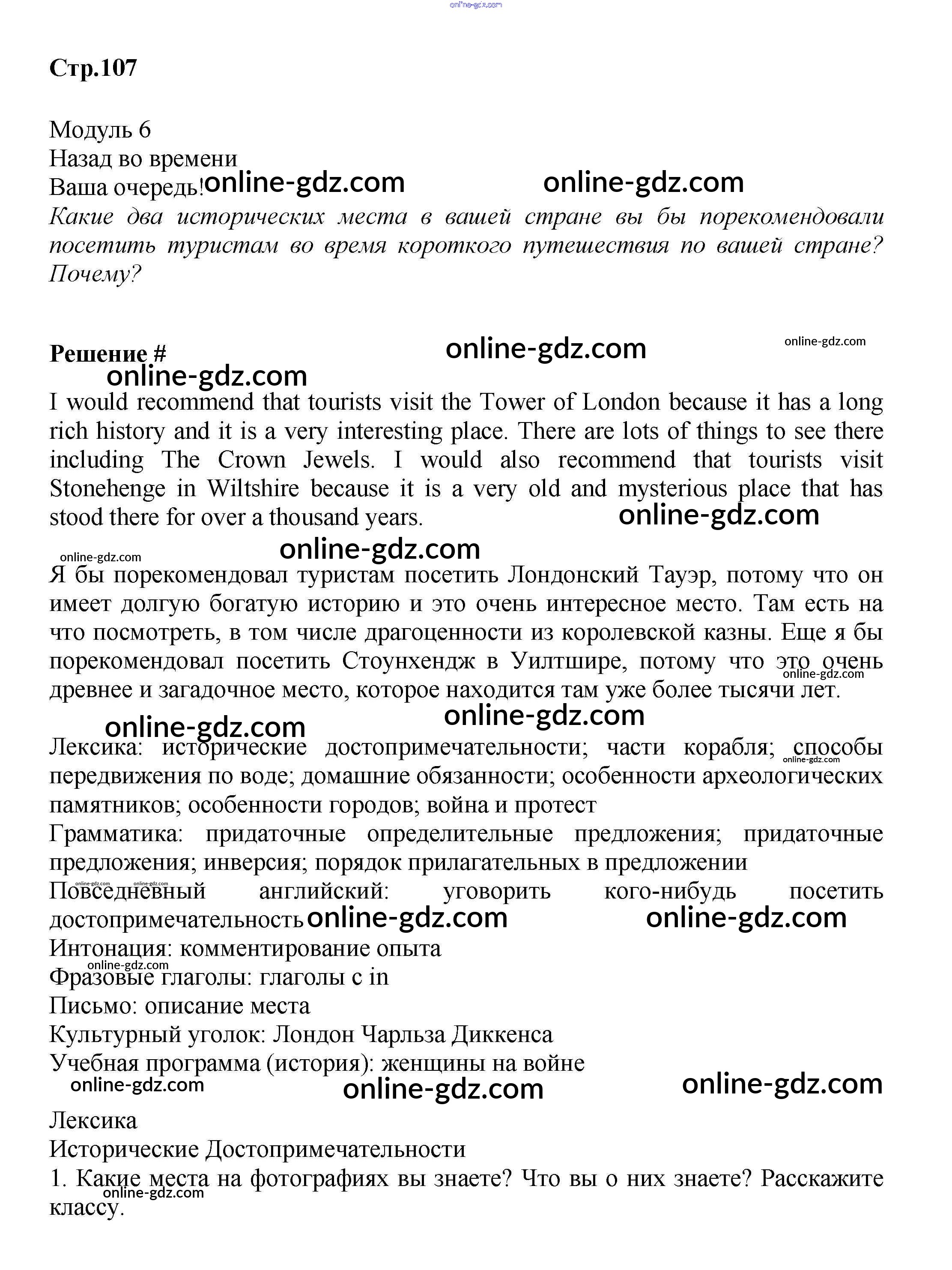Готовые домашние задания по Английскому языку за 9 класс Учебник Баранова, Дули Starlight Углубленный уровень 2017 - Module 6. Back in time стр.107