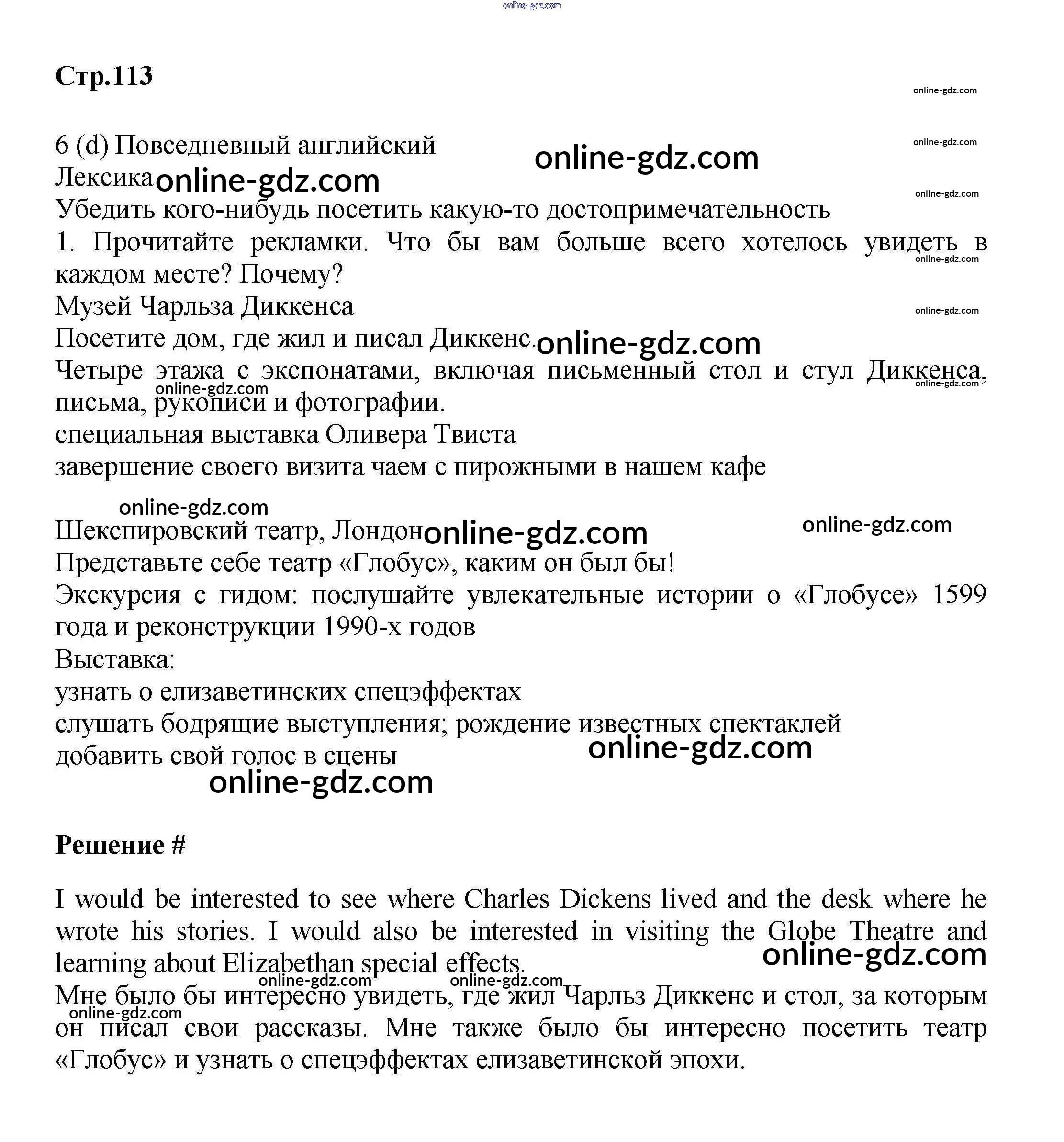 Готовые домашние задания по Английскому языку за 9 класс Учебник Баранова, Дули Starlight Углубленный уровень 2017 - Module 6. Back in time стр.113