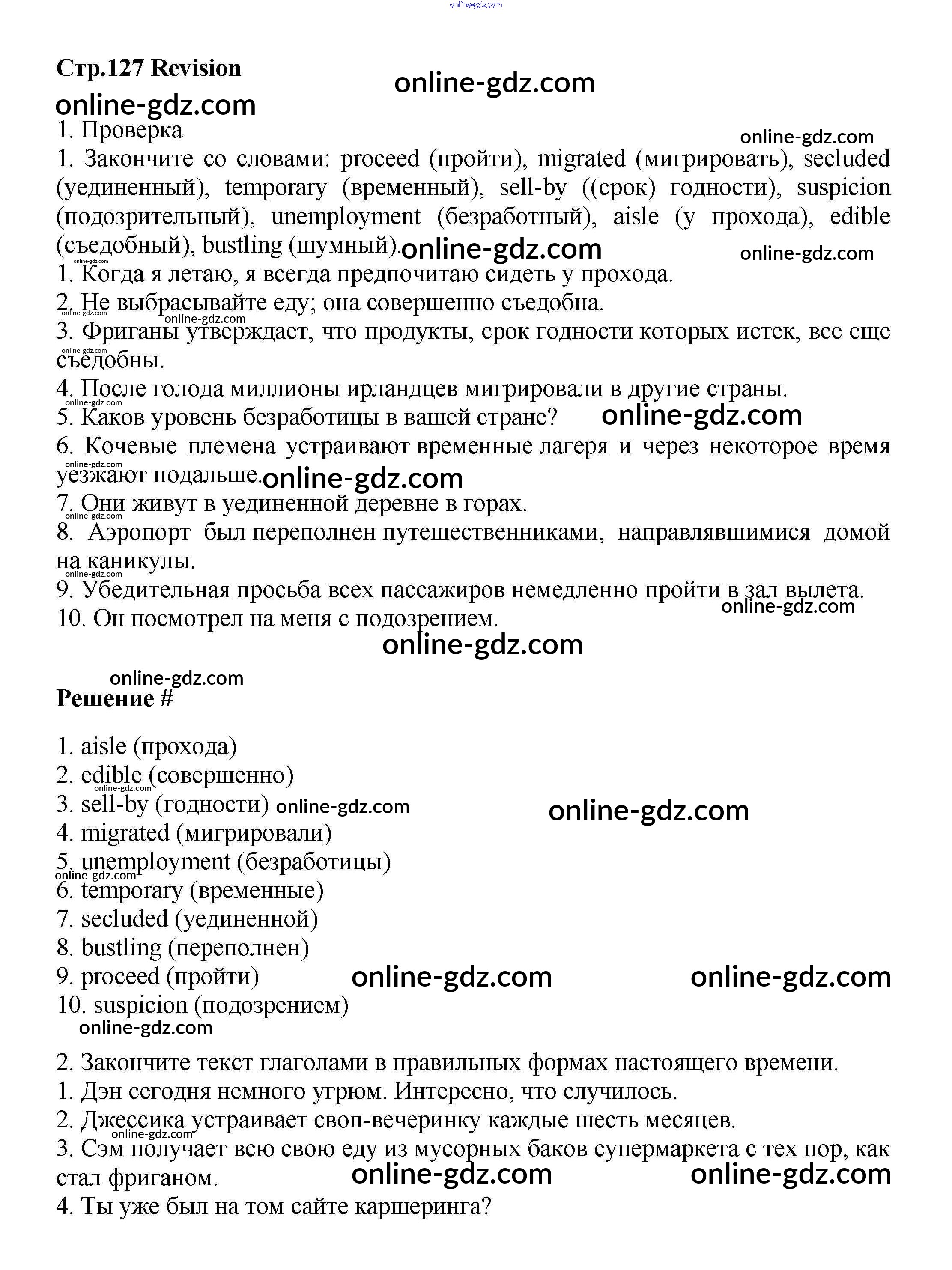 Готовые домашние задания по Английскому языку за 9 класс Учебник Баранова, Дули Starlight Углубленный уровень 2017 - Revision стр.127