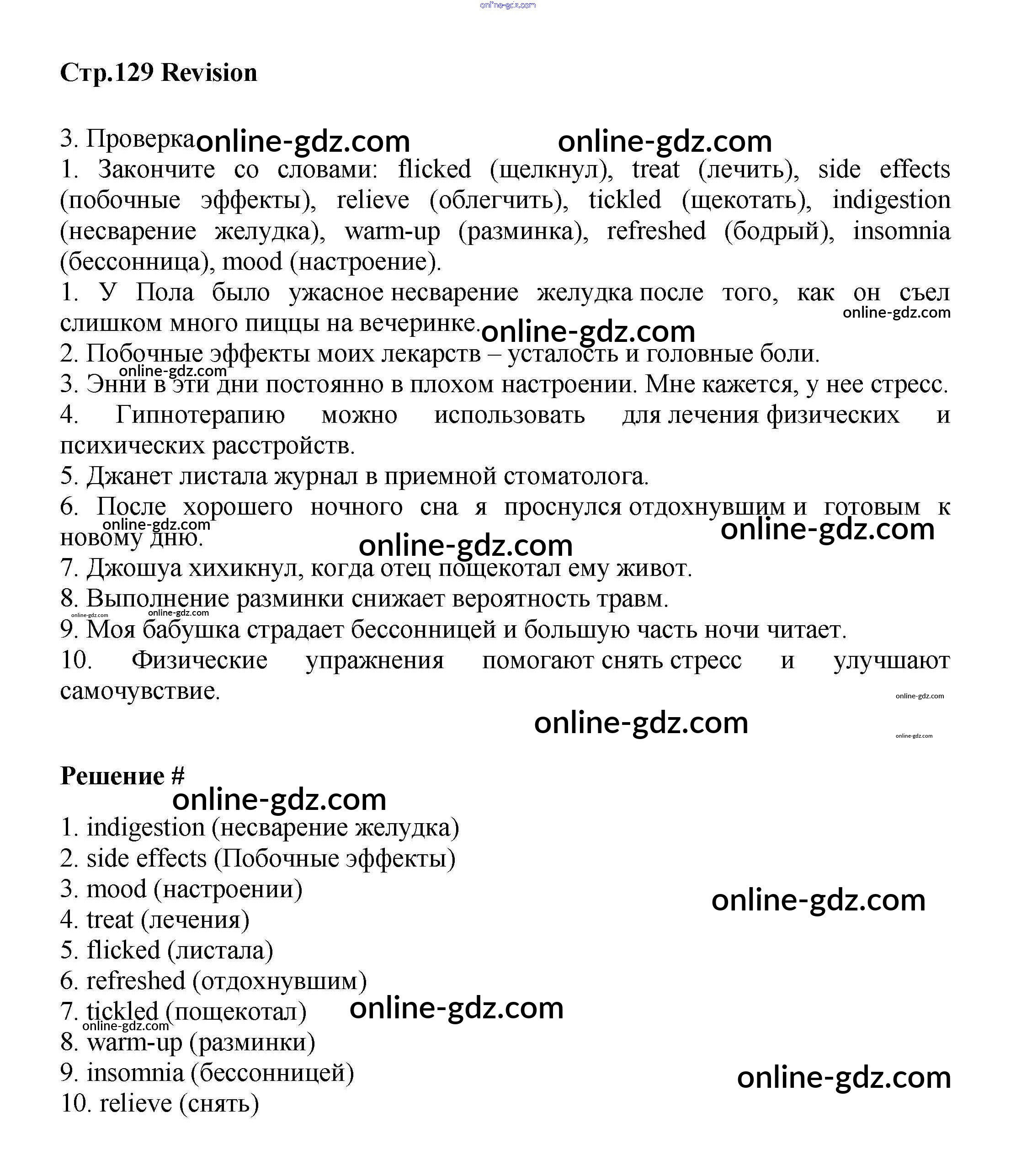 Готовые домашние задания по Английскому языку за 9 класс Учебник Баранова, Дули Starlight Углубленный уровень 2017 - Revision стр.129