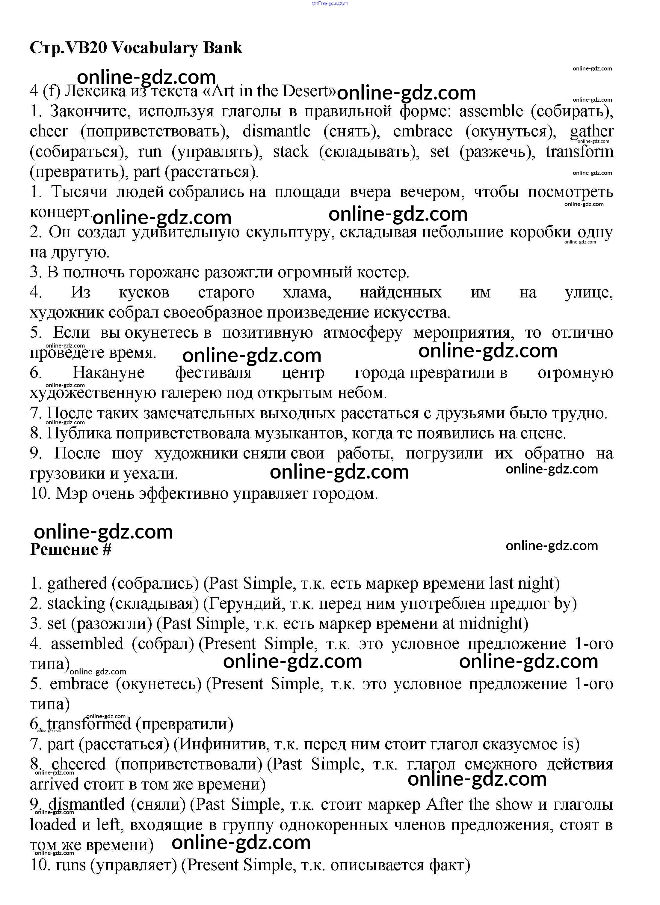 Готовые домашние задания по Английскому языку за 9 класс Учебник Баранова, Дули Starlight Углубленный уровень 2017 - Vocabulary Bank VB20