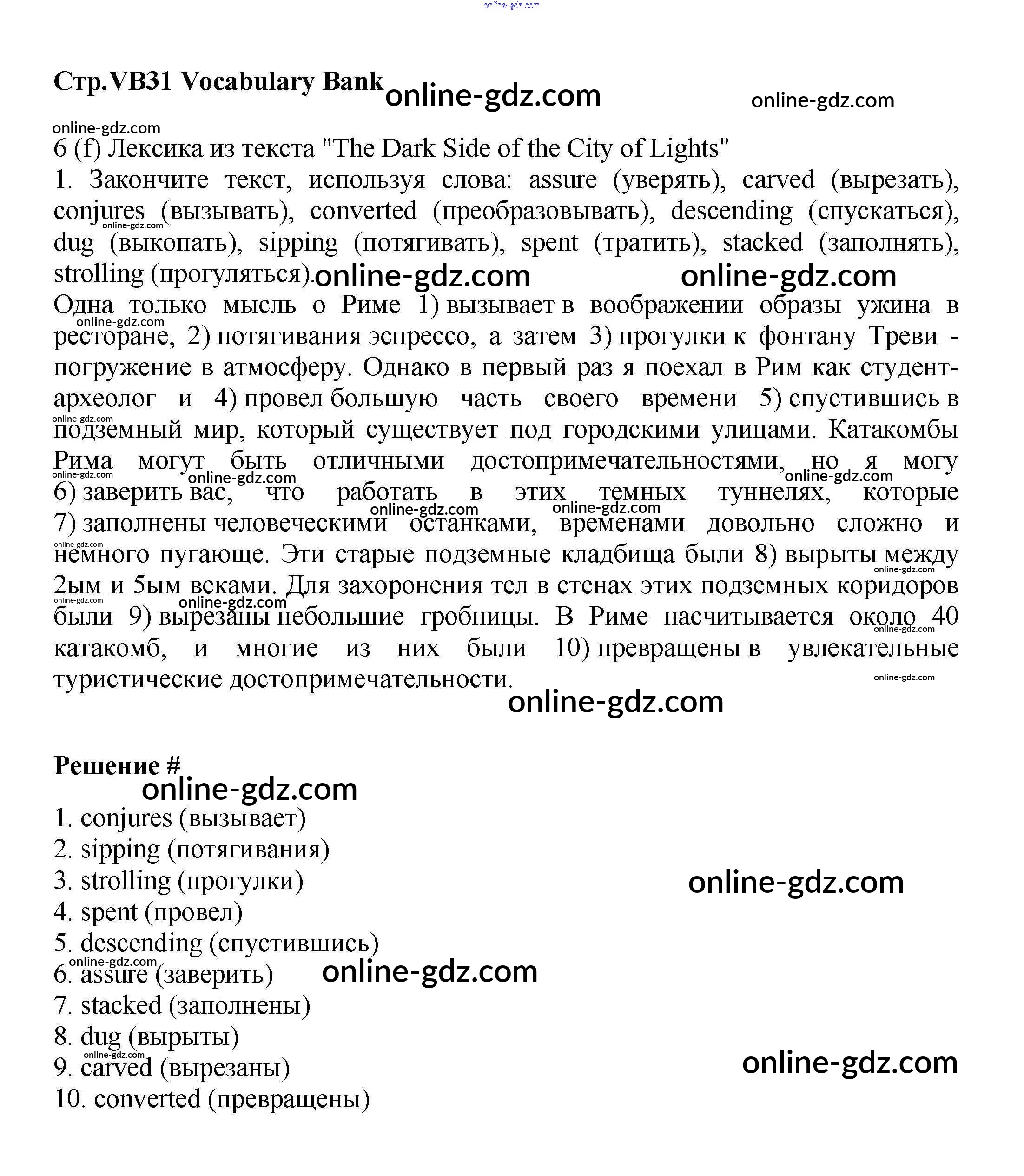 Готовые домашние задания по Английскому языку за 9 класс Учебник Баранова, Дули Starlight Углубленный уровень 2017 - Vocabulary Bank VB31