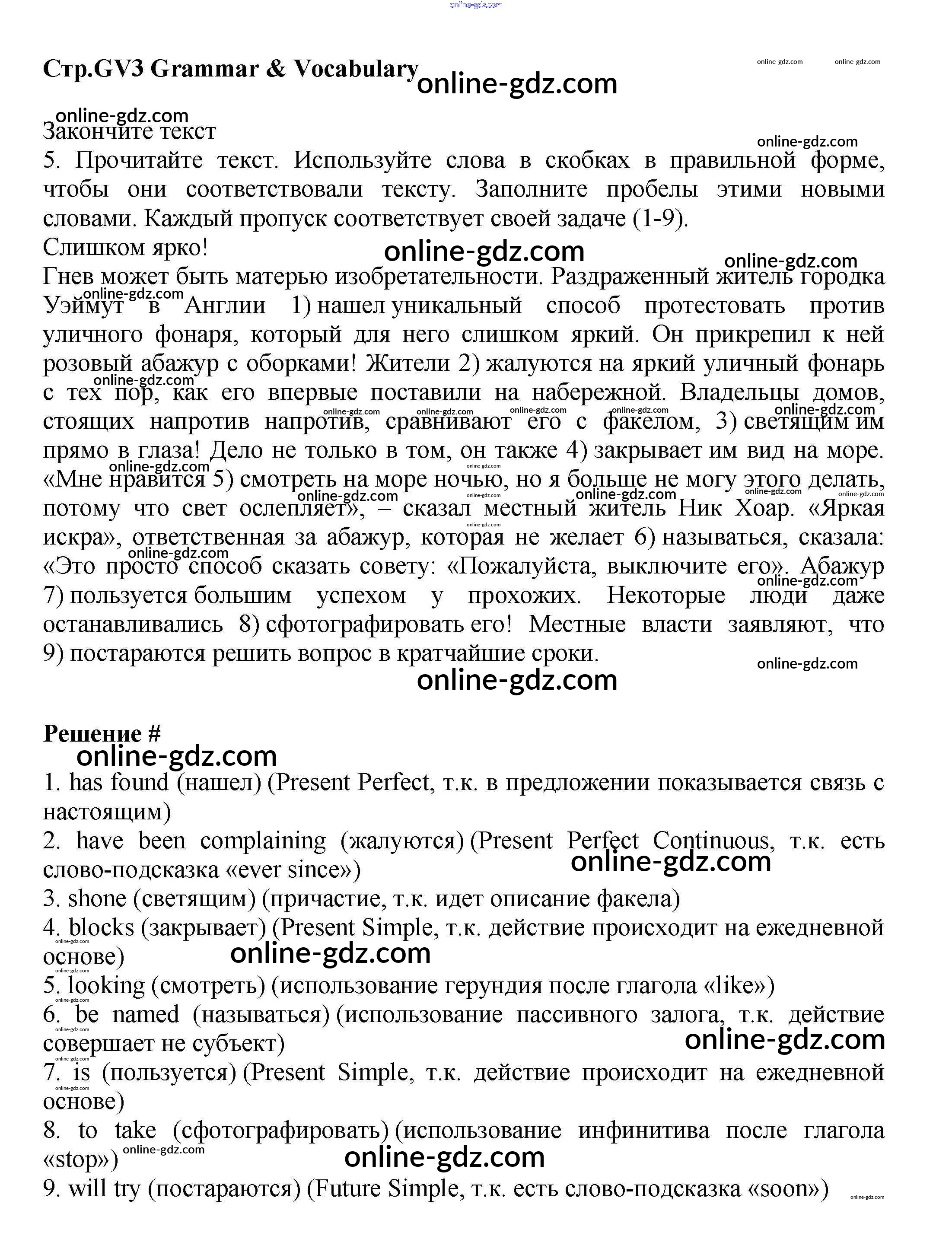 Готовые домашние задания по Английскому языку за 9 класс Учебник Баранова, Дули Starlight Углубленный уровень 2017 - Grammar & Vocabulary (Use of English) GV3