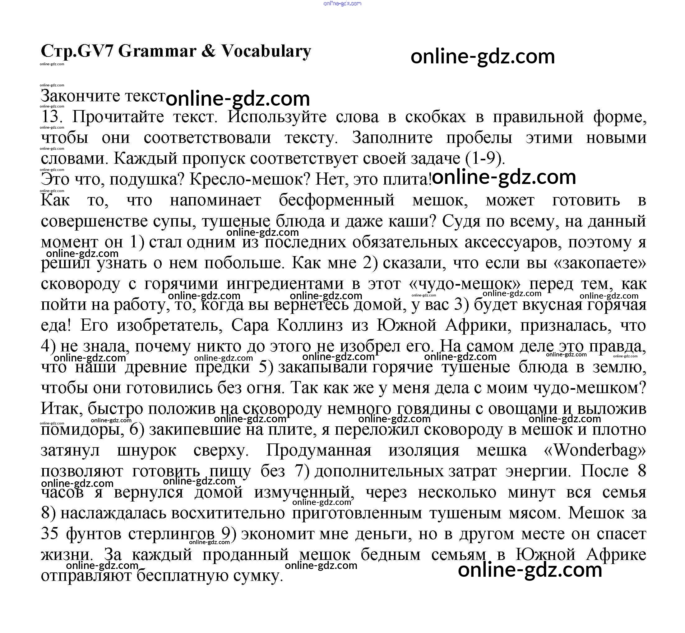 Готовые домашние задания по Английскому языку за 9 класс Учебник Баранова, Дули Starlight Углубленный уровень 2017 - Grammar & Vocabulary (Use of English) GV7
