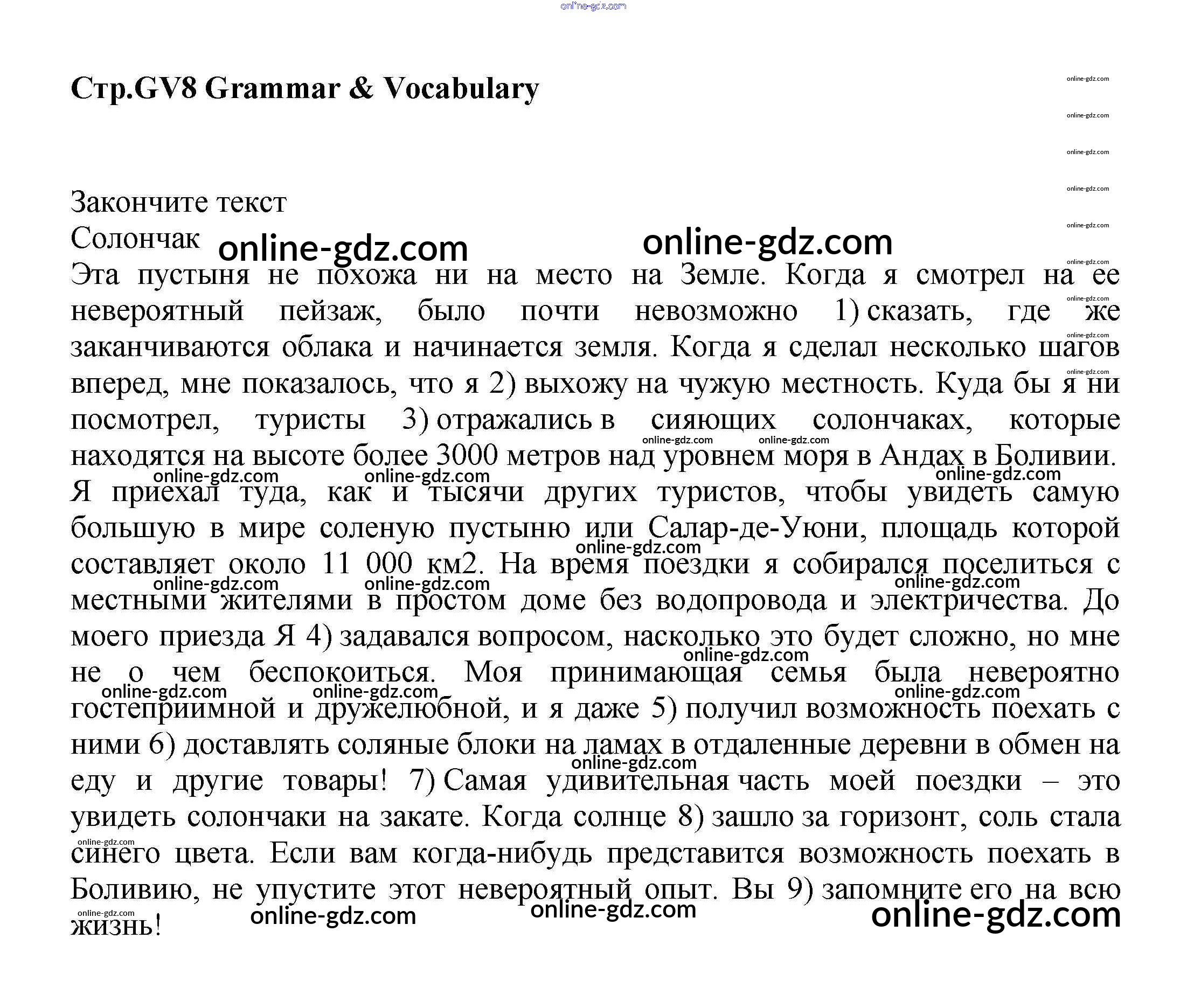 Готовые домашние задания по Английскому языку за 9 класс Учебник Баранова, Дули Starlight Углубленный уровень 2017 - Grammar & Vocabulary (Use of English) GV8