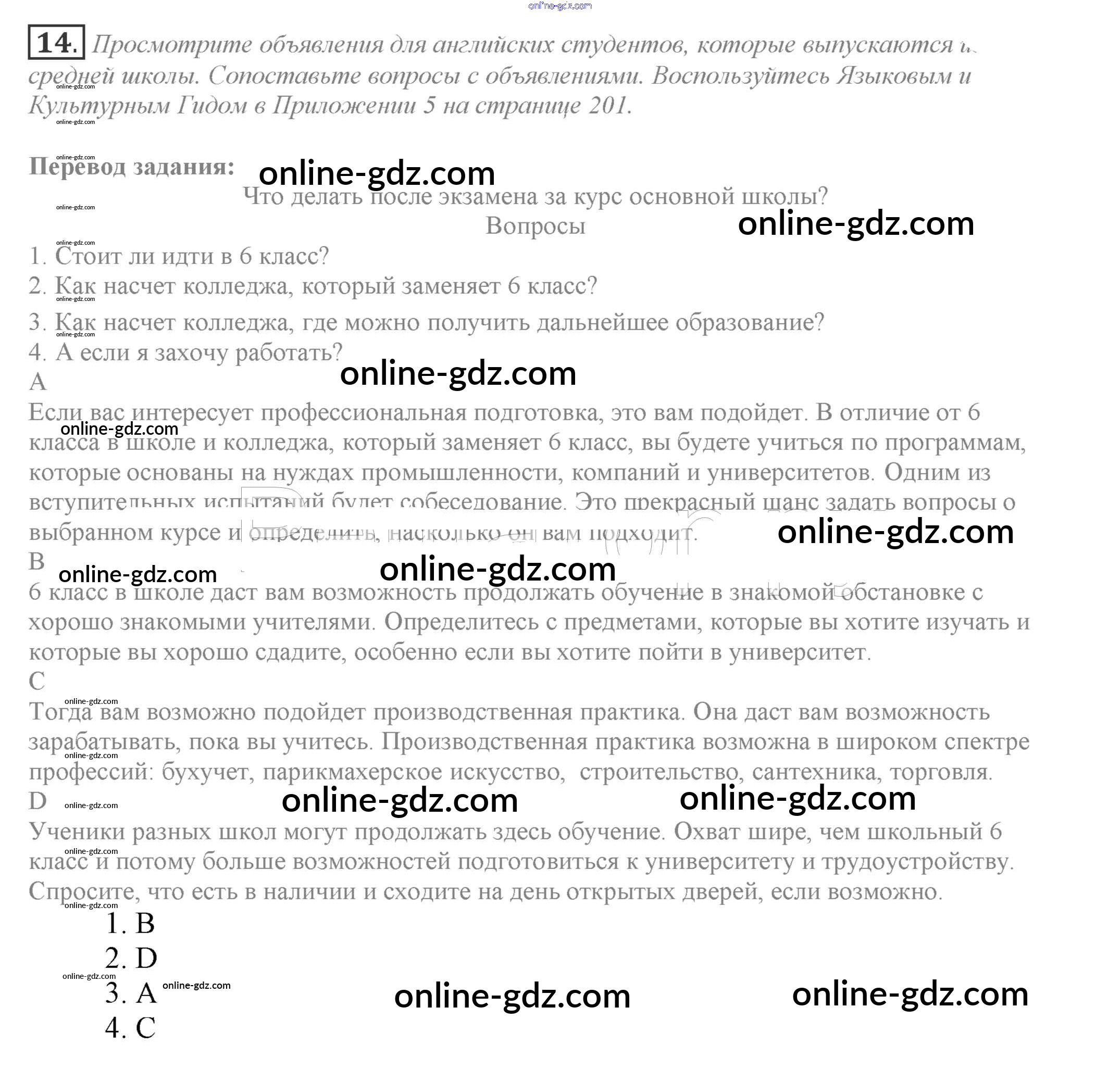 Готовые домашние задания по Английскому языку за 9 класс Учебник Биболетова, Бабушис УМК 2014 - Unit 4 14