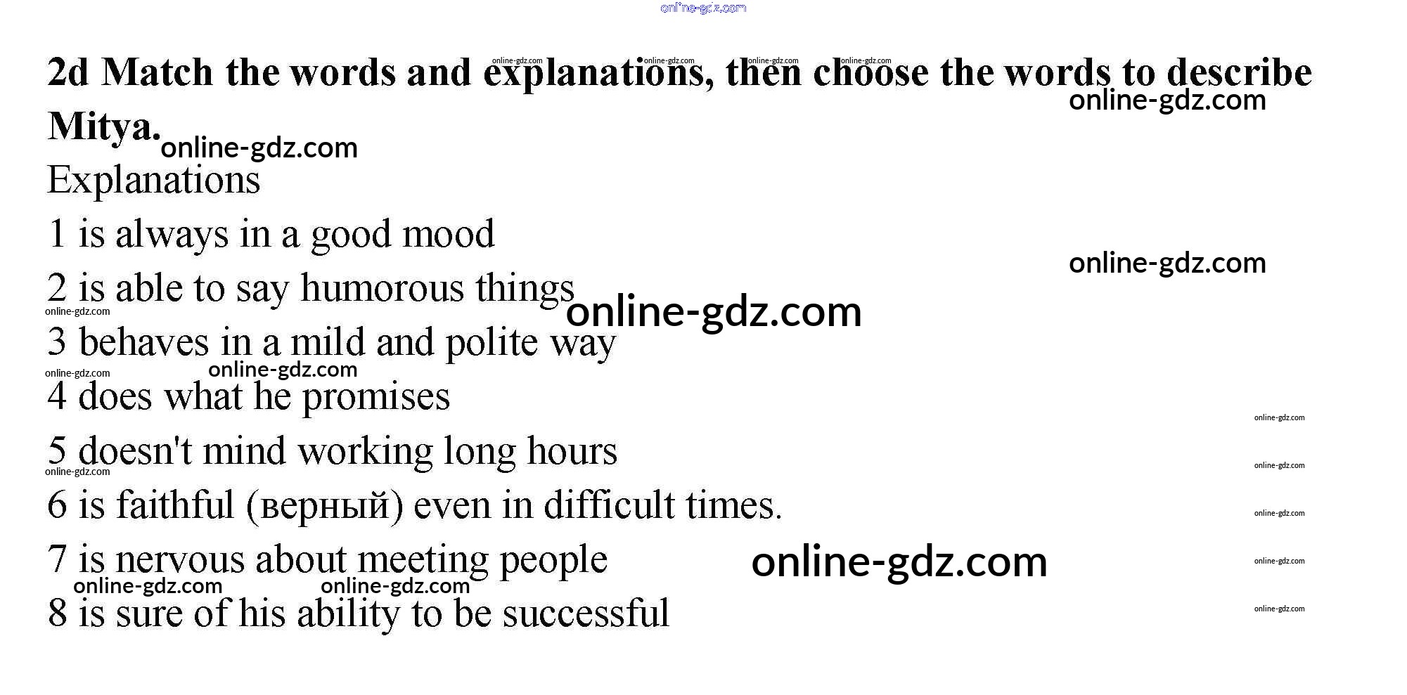 Готовые домашние задания по Английскому языку за 9 класс Учебник Гроза, Дворецкая New Millennium 2010 - Lesson 3-4 Unit 1. People with personality 2d