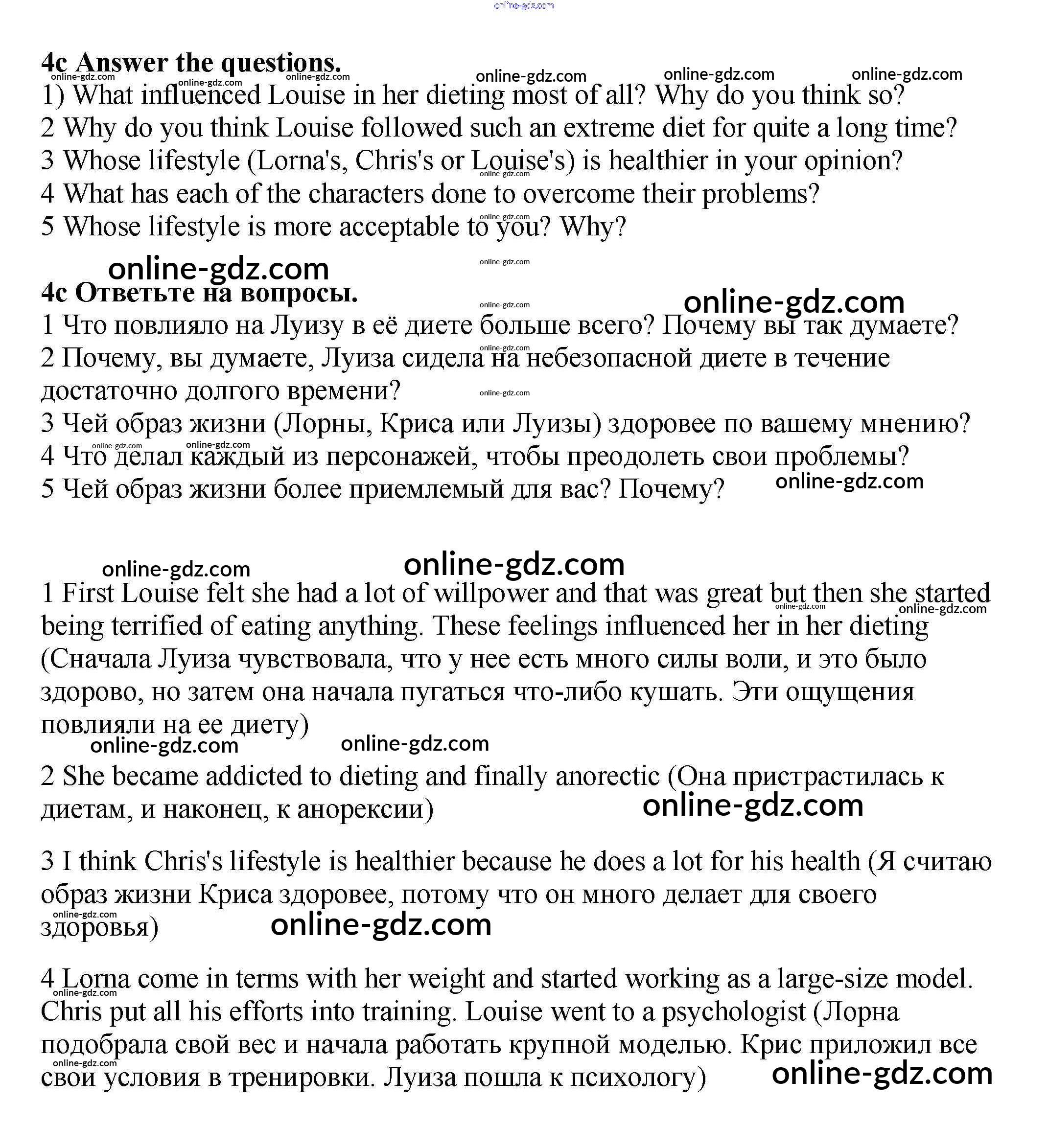 Готовые домашние задания по Английскому языку за 9 класс Учебник Гроза, Дворецкая New Millennium 2010 - Lesson 5-6 Unit 10. Healthy body, healthy mind 4c