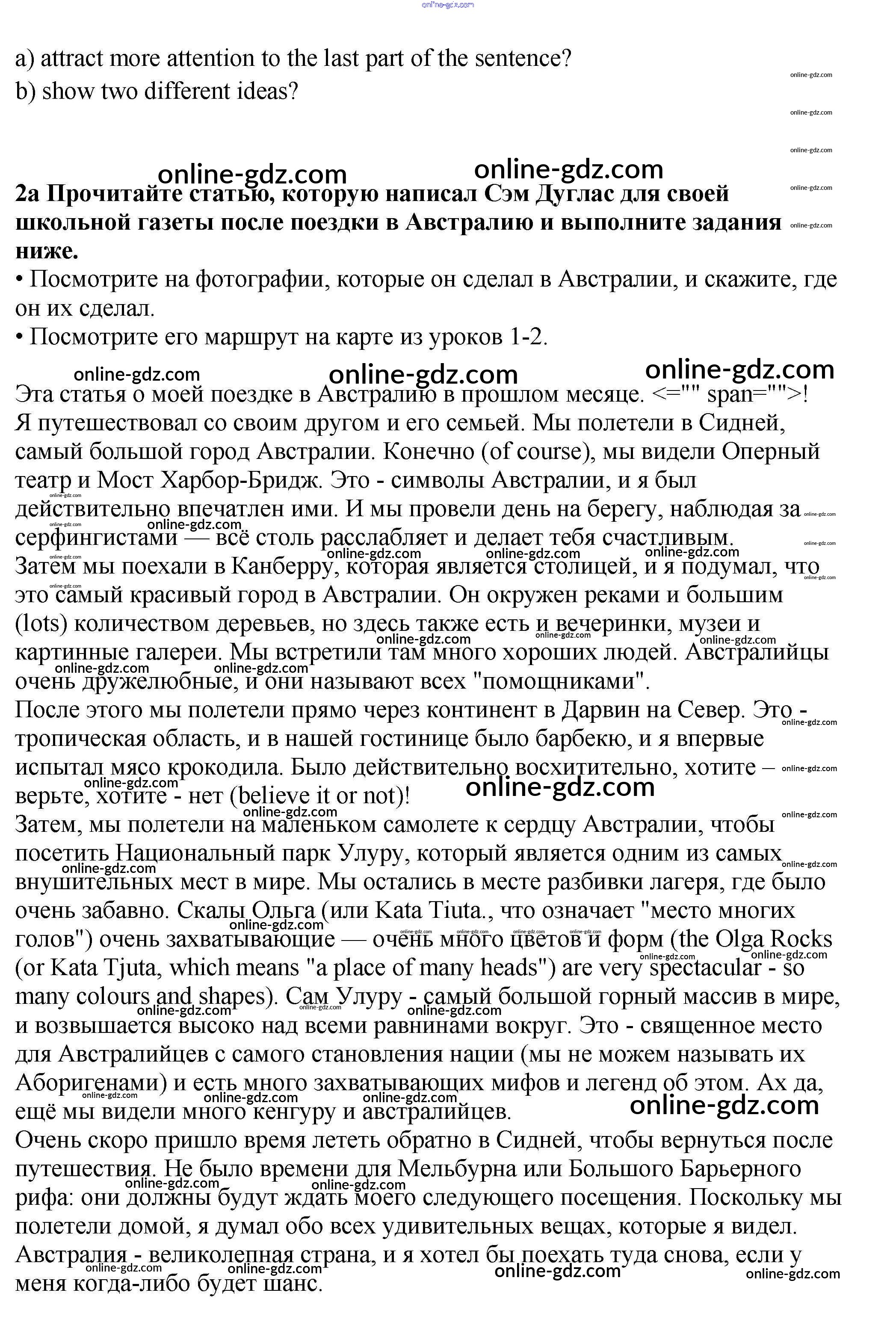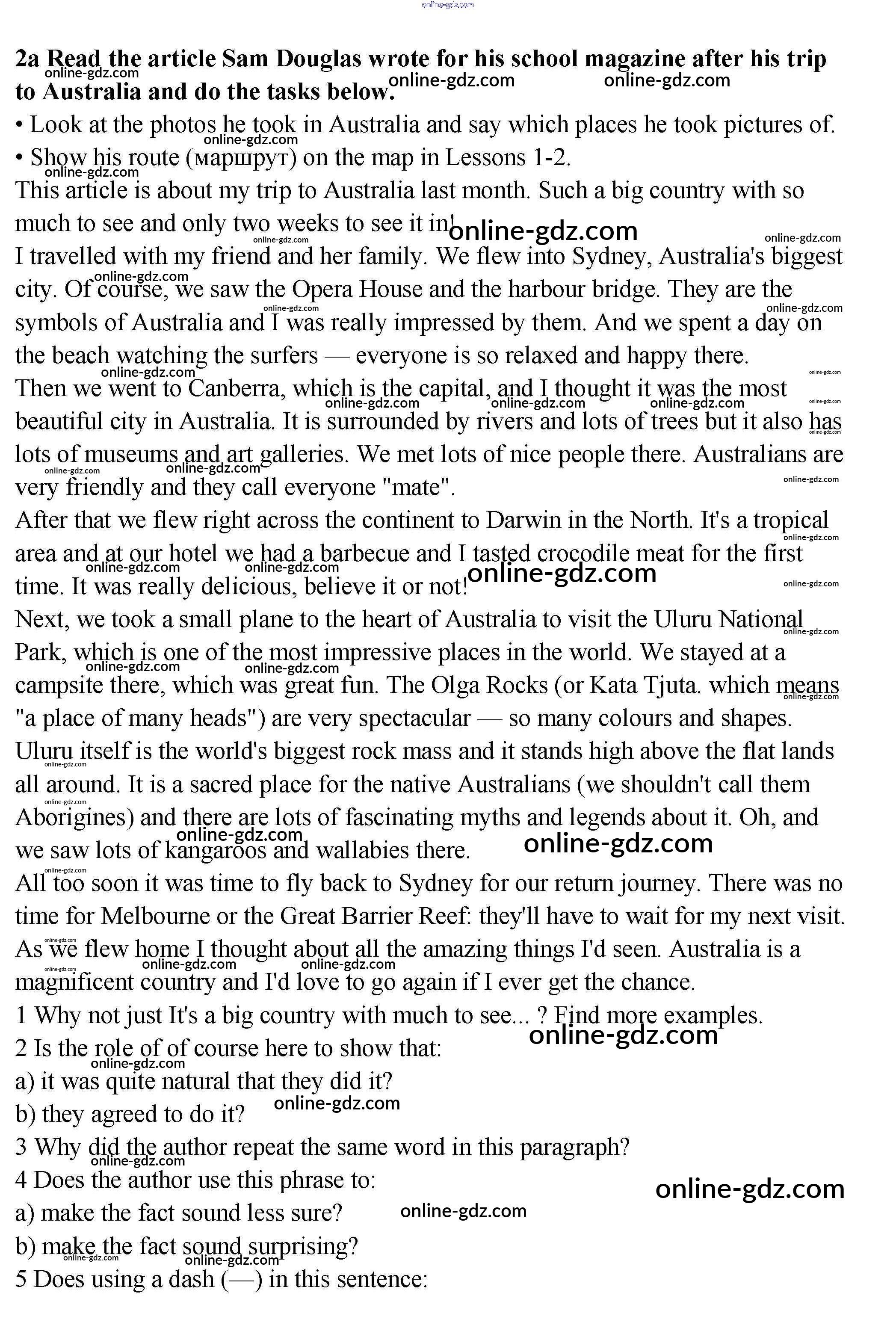 Готовые домашние задания по Английскому языку за 9 класс Учебник Гроза, Дворецкая New Millennium 2010 - Lesson 6 Unit 5. Let's travel Australia! 2a