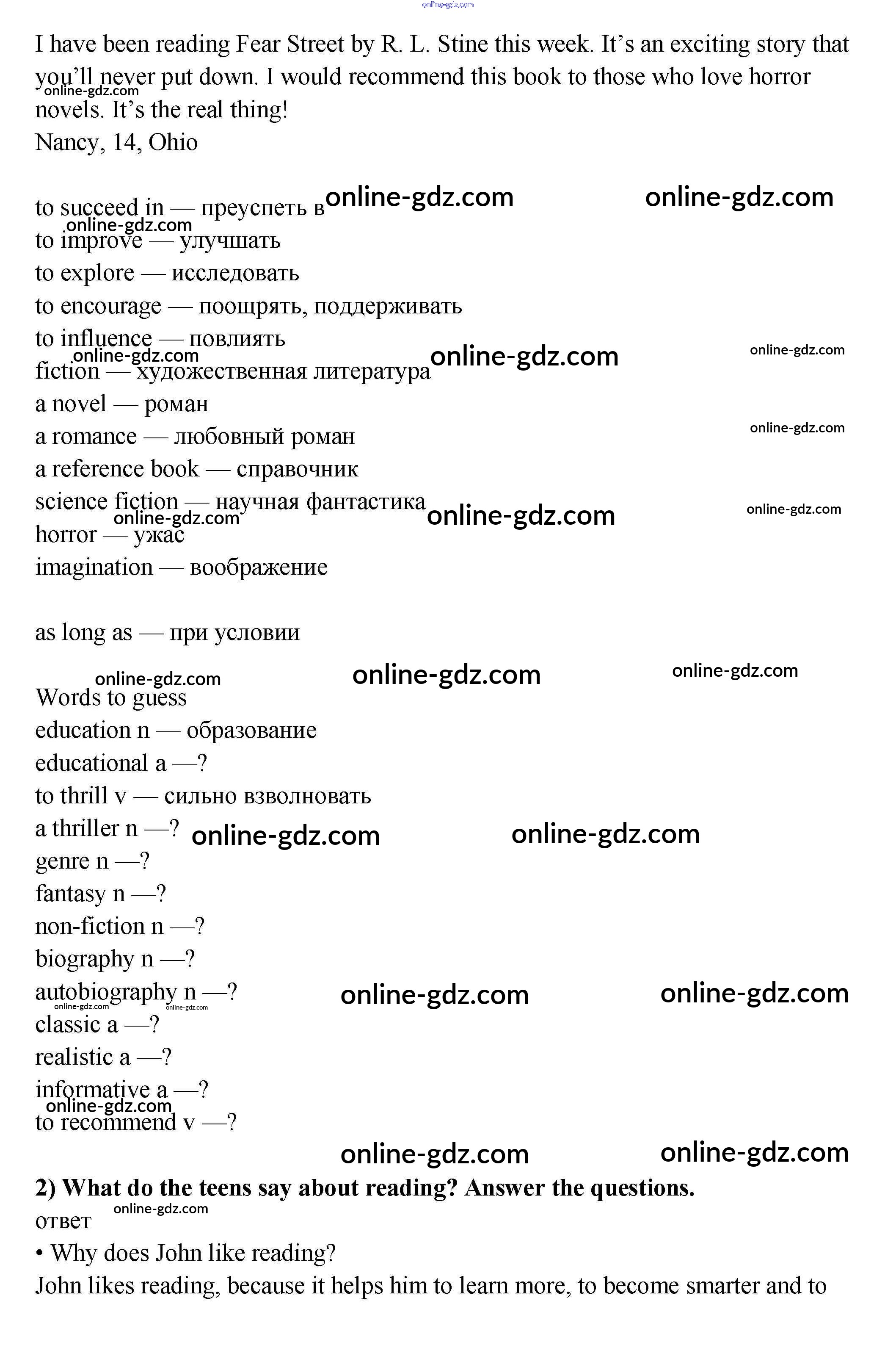 Готовые домашние задания по Английскому языку за 9 класс Учебник Кузовлев, Лапа УМК 2015 - Урок 1 Unit 1. Reading..? Why not? 1