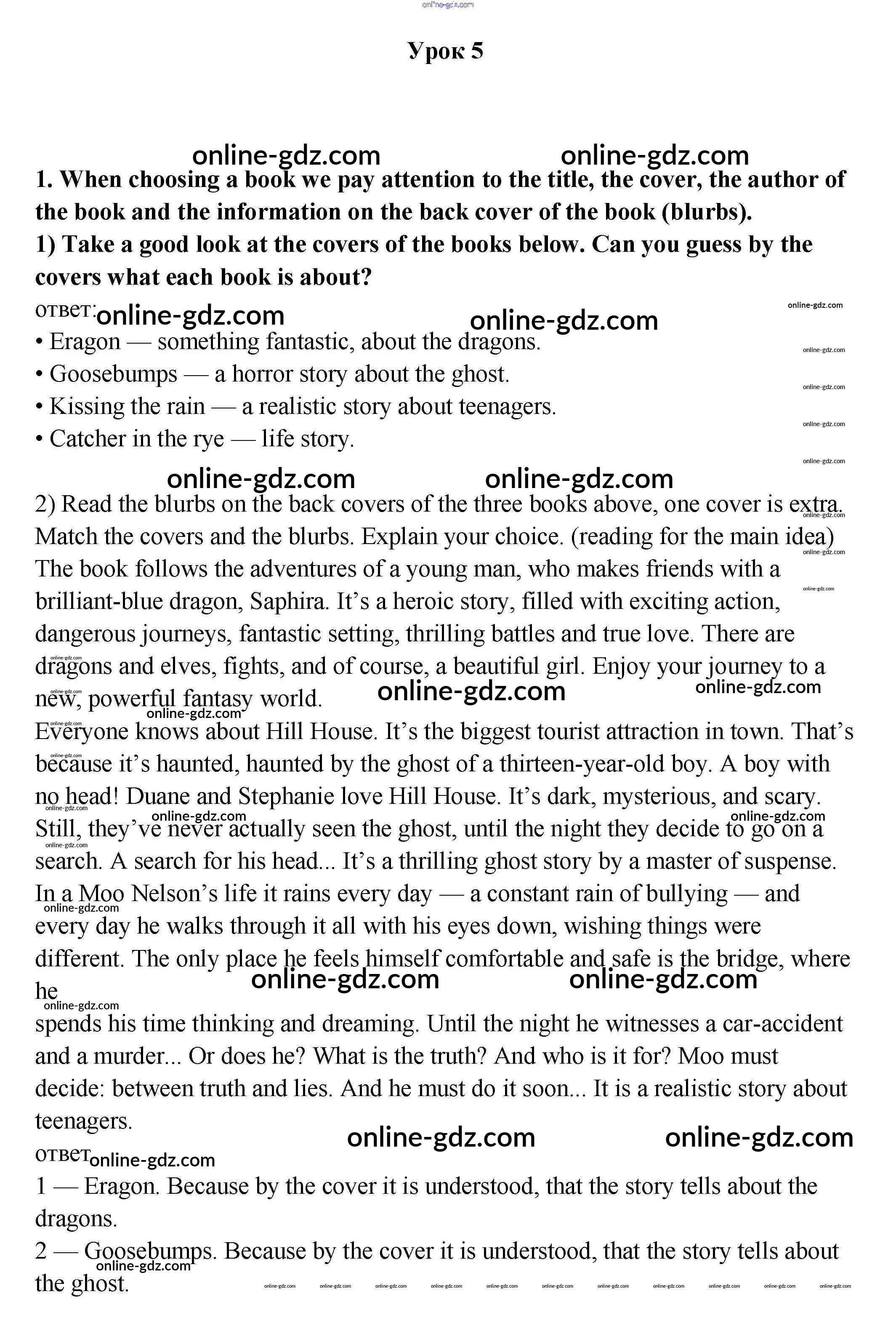 Готовые домашние задания по Английскому языку за 9 класс Учебник Кузовлев, Лапа УМК 2015 - Урок 5 Unit 1. Reading..? Why not? 1