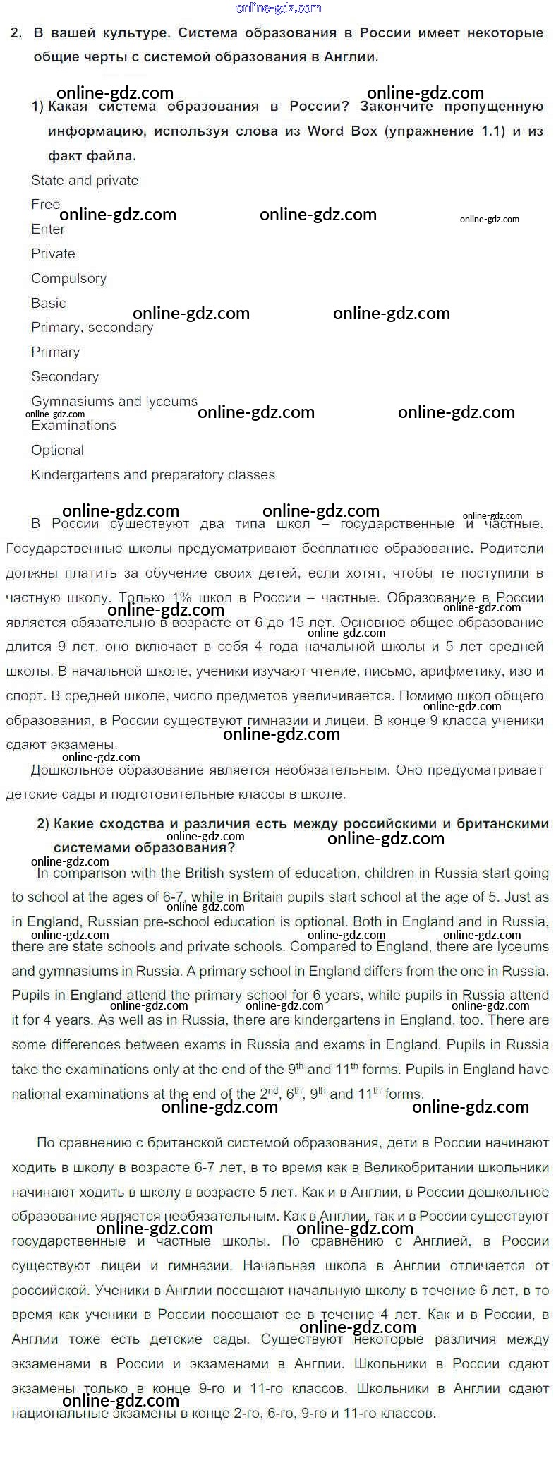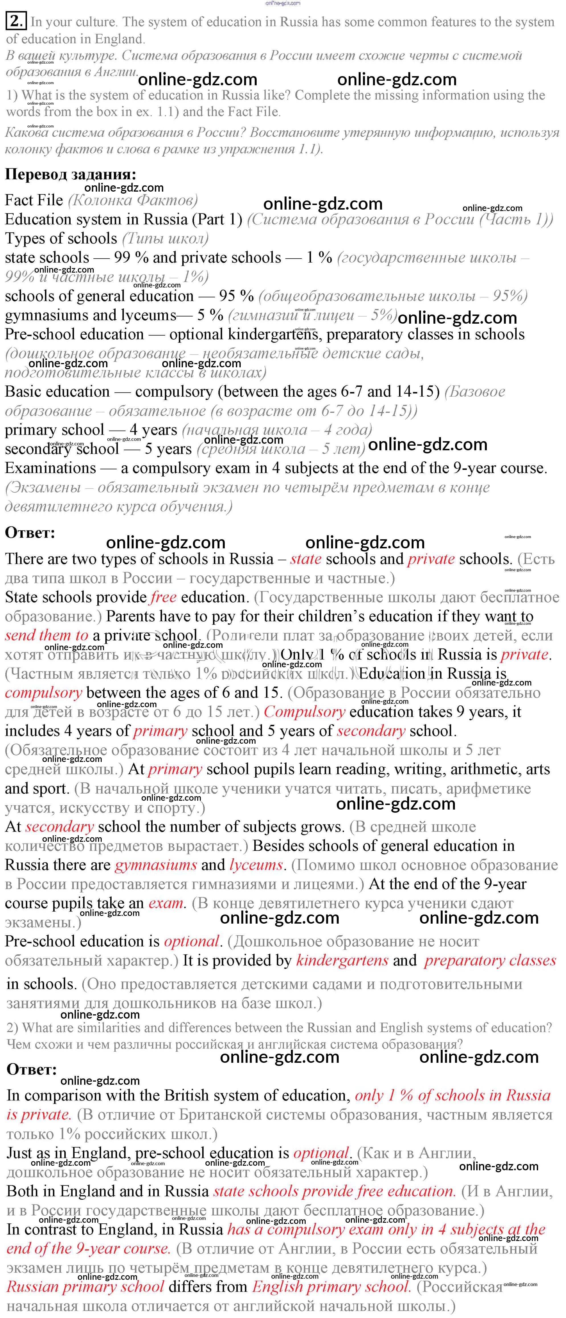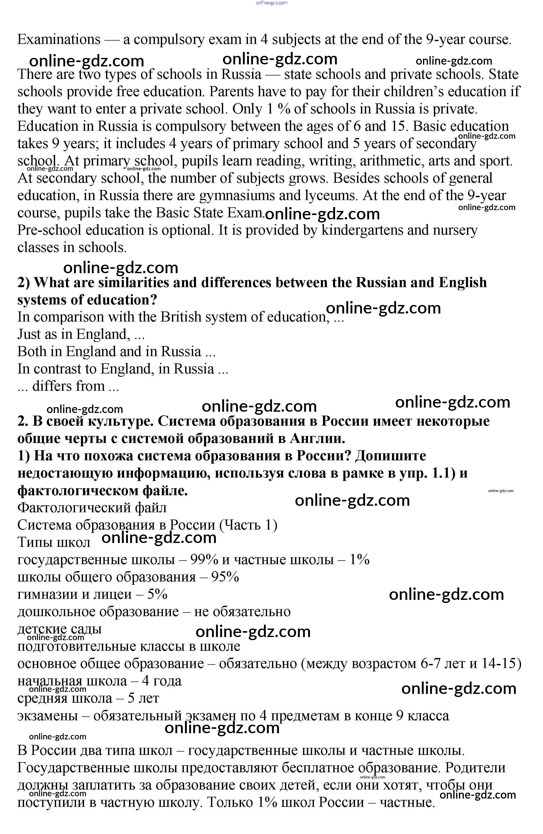 Готовые домашние задания по Английскому языку за 9 класс Учебник Кузовлев, Лапа УМК 2015 - Урок 1 Unit 4. What school do you go to? 2