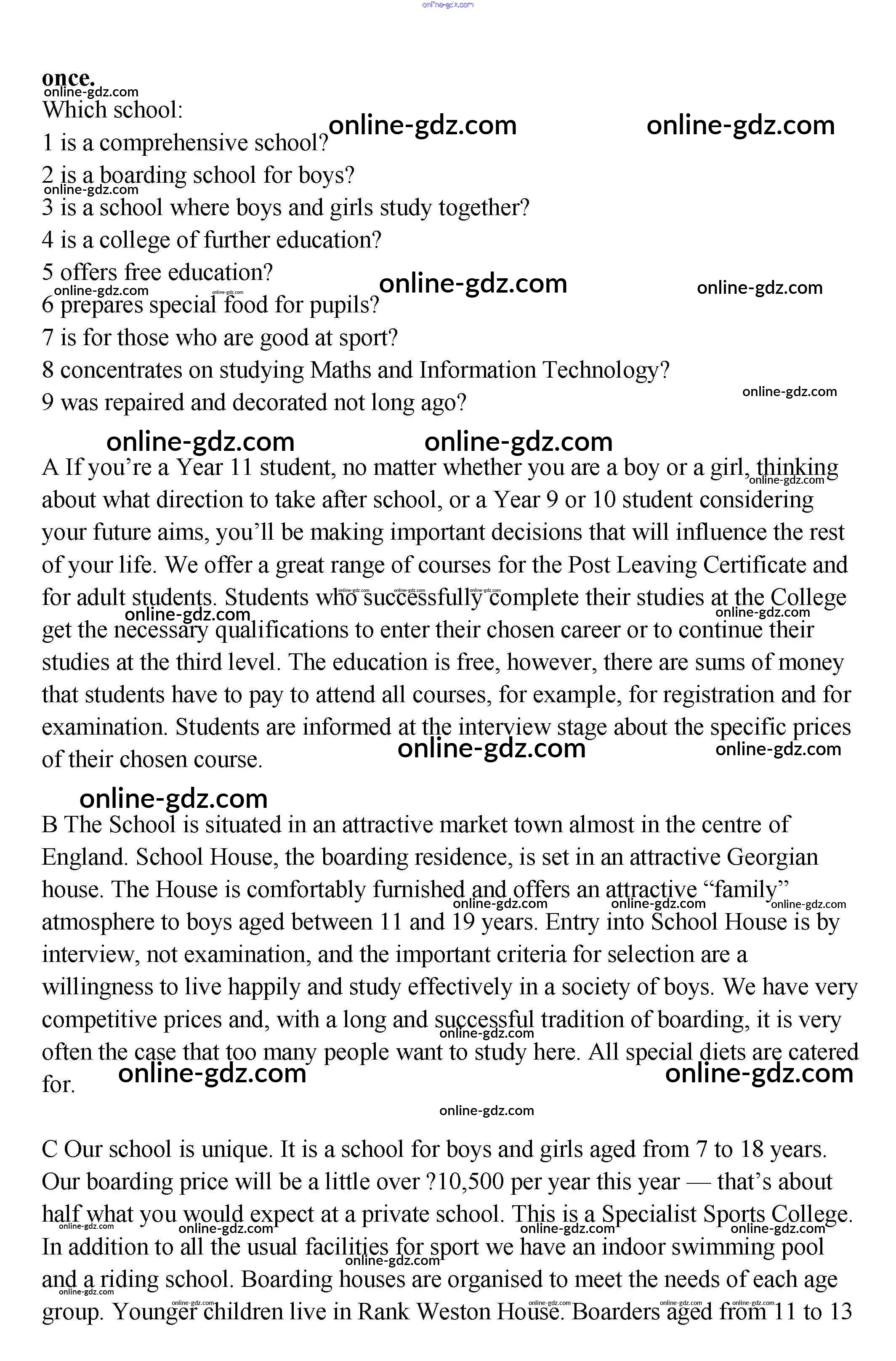 Готовые домашние задания по Английскому языку за 9 класс Учебник Кузовлев, Лапа УМК 2015 - Урок 10 Unit 4. What school do you go to? 2