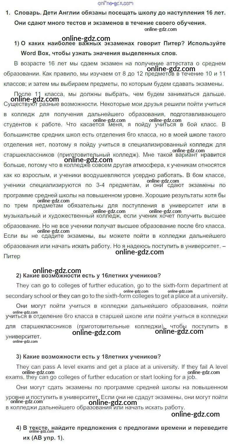 Готовые домашние задания по Английскому языку за 9 класс Учебник Кузовлев, Лапа УМК 2015 - Урок 2 Unit 4. What school do you go to? 1