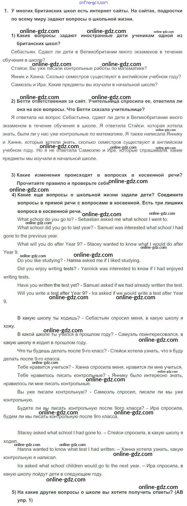 Готовые домашние задания по Английскому языку за 9 класс Учебник Кузовлев, Лапа УМК 2015 - Урок 4 Unit 4. What school do you go to? 1