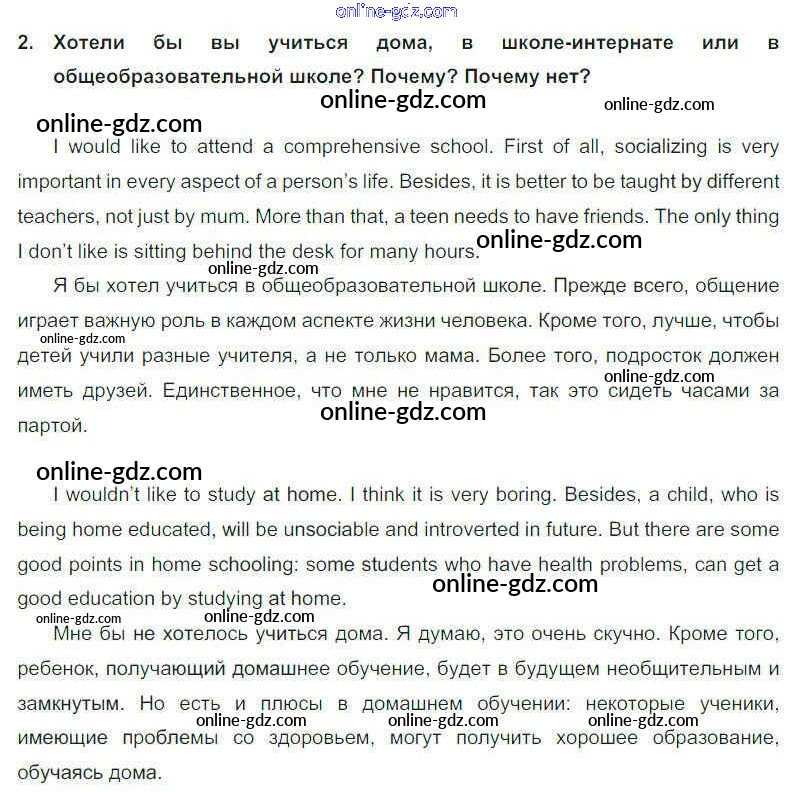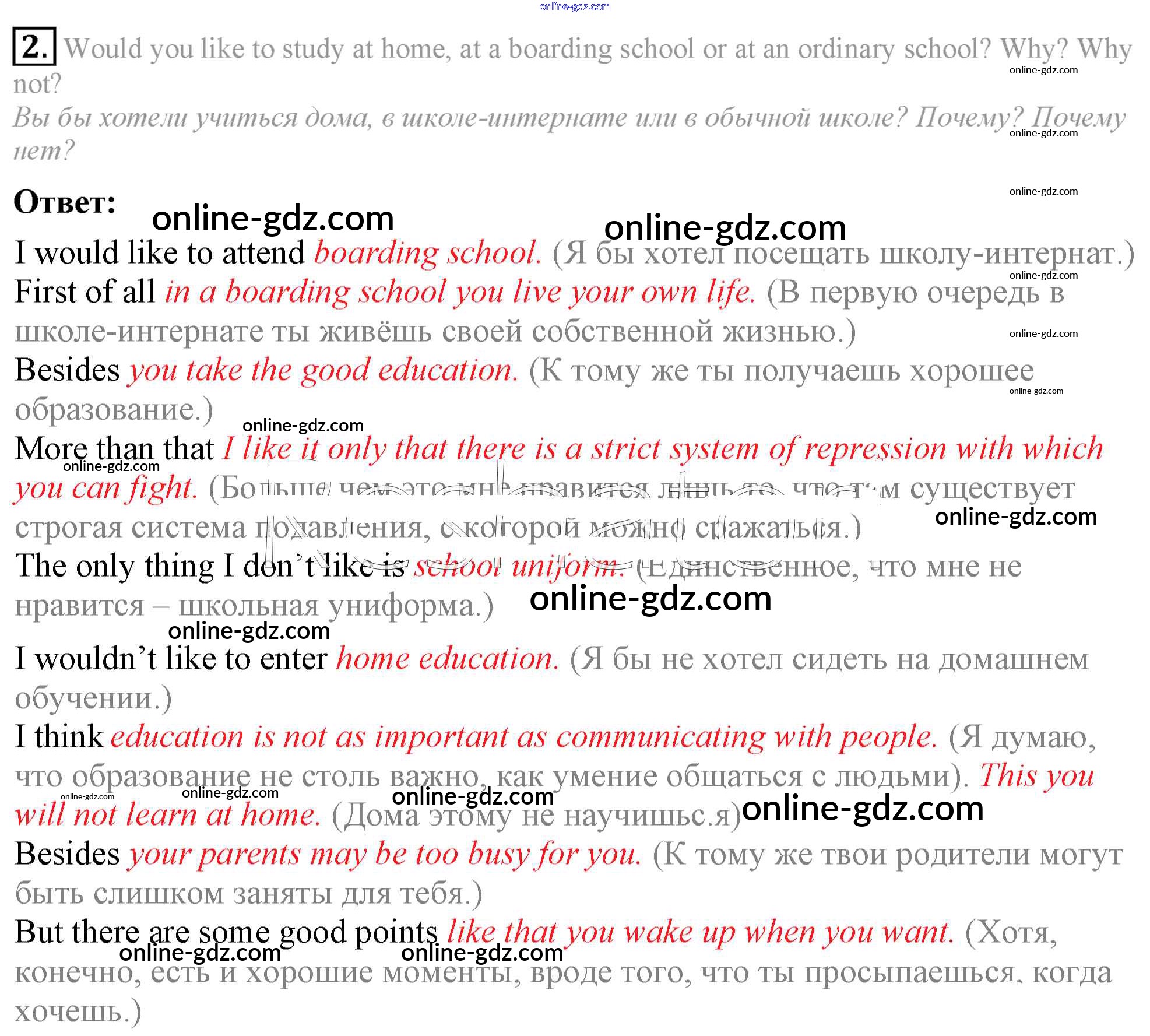 Готовые домашние задания по Английскому языку за 9 класс Учебник Кузовлев, Лапа УМК 2015 - Урок 5 Unit 4. What school do you go to? 2