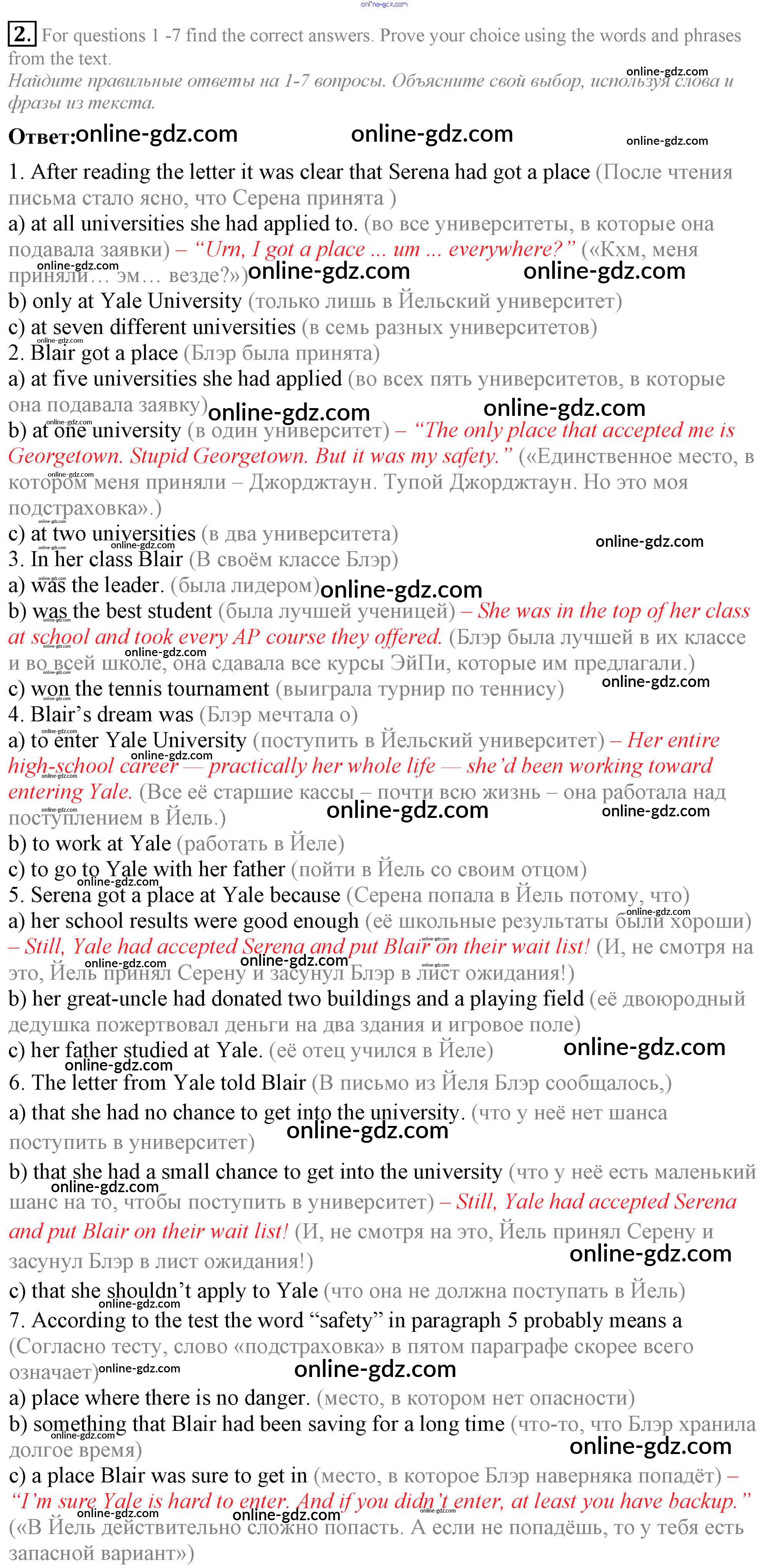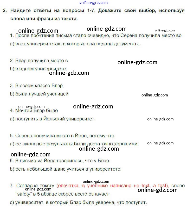 Готовые домашние задания по Английскому языку за 9 класс Учебник Кузовлев, Лапа УМК 2015 - Урок 7 Unit 4. What school do you go to? 2