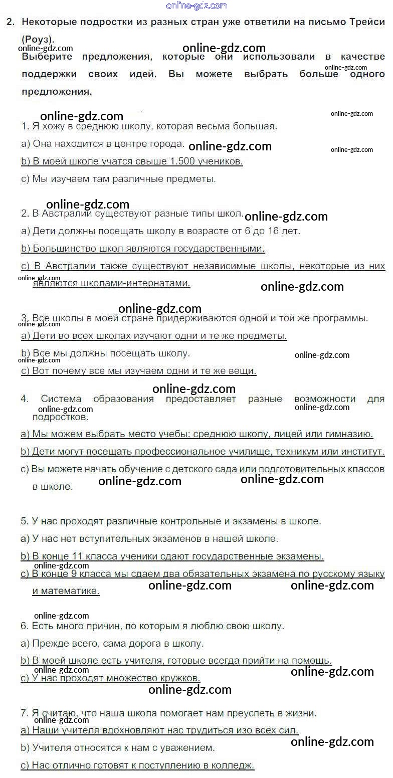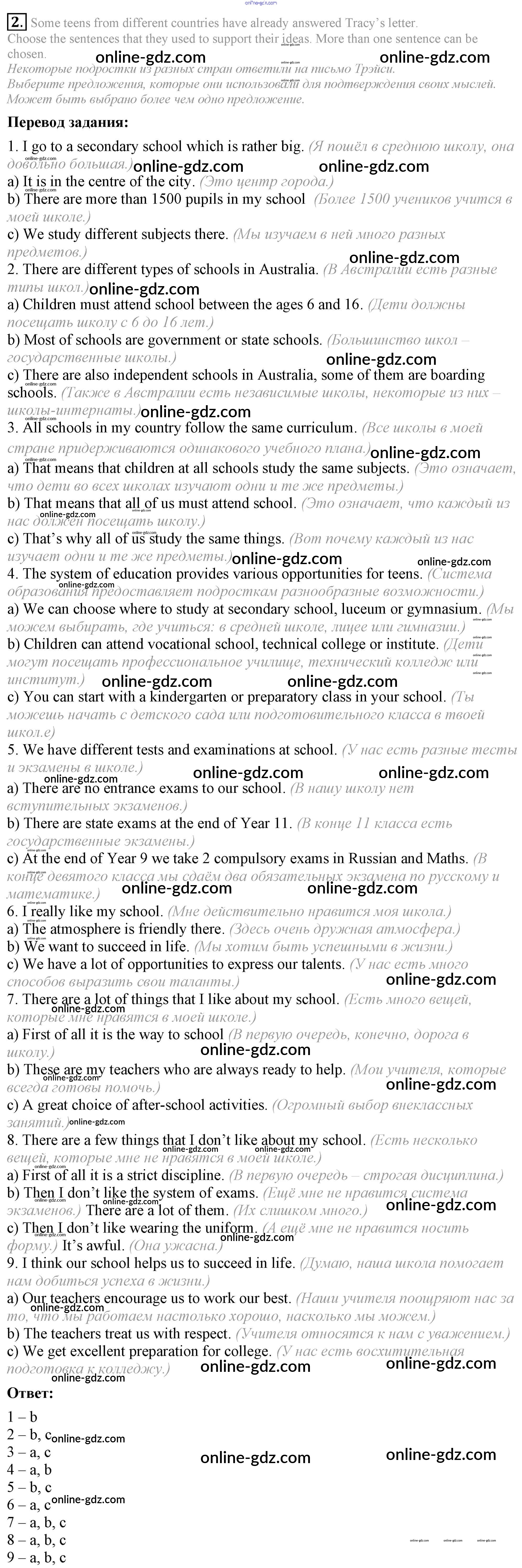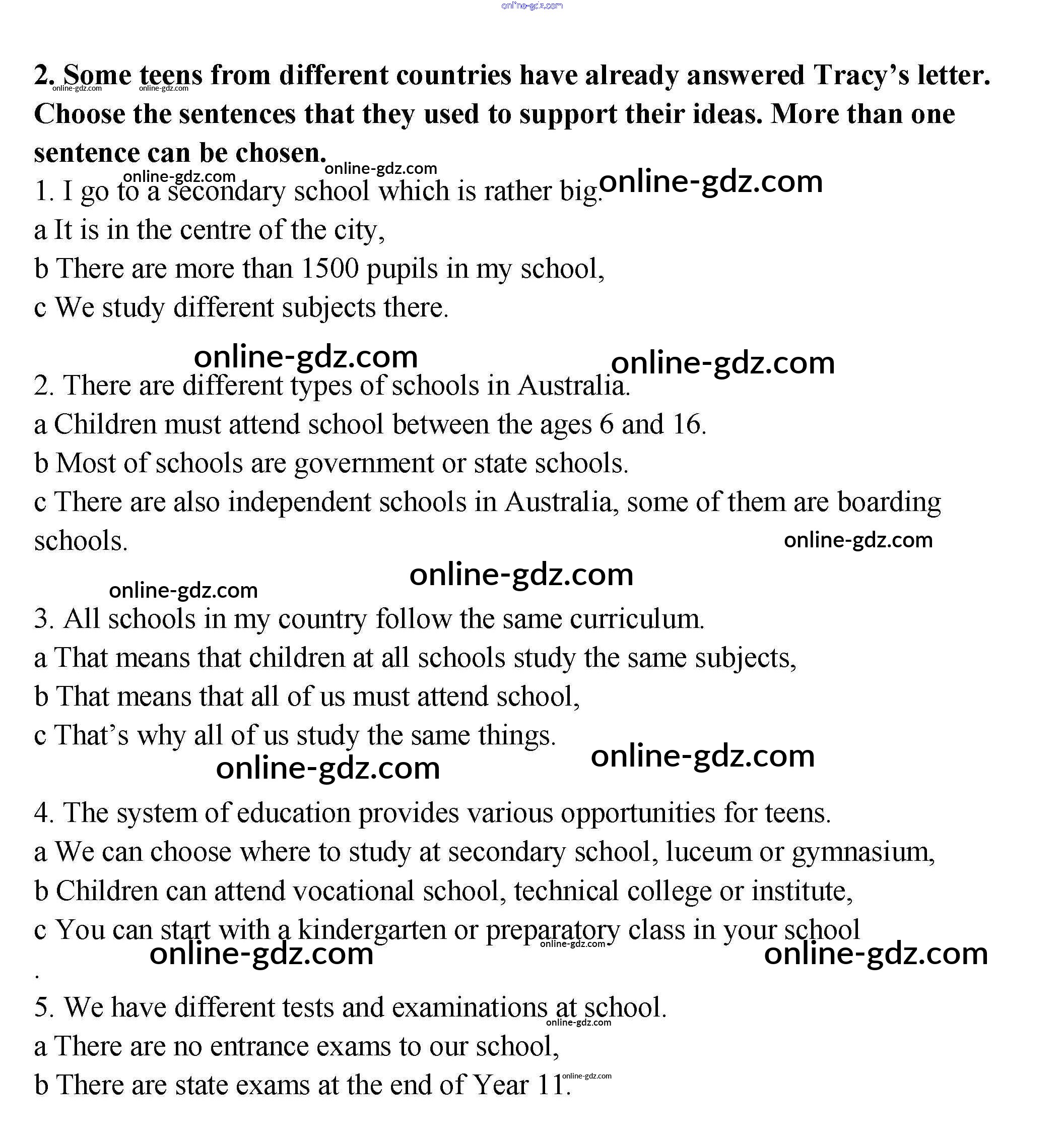 Готовые домашние задания по Английскому языку за 9 класс Учебник Кузовлев, Лапа УМК 2015 - Урок 8 Unit 4. What school do you go to? 2