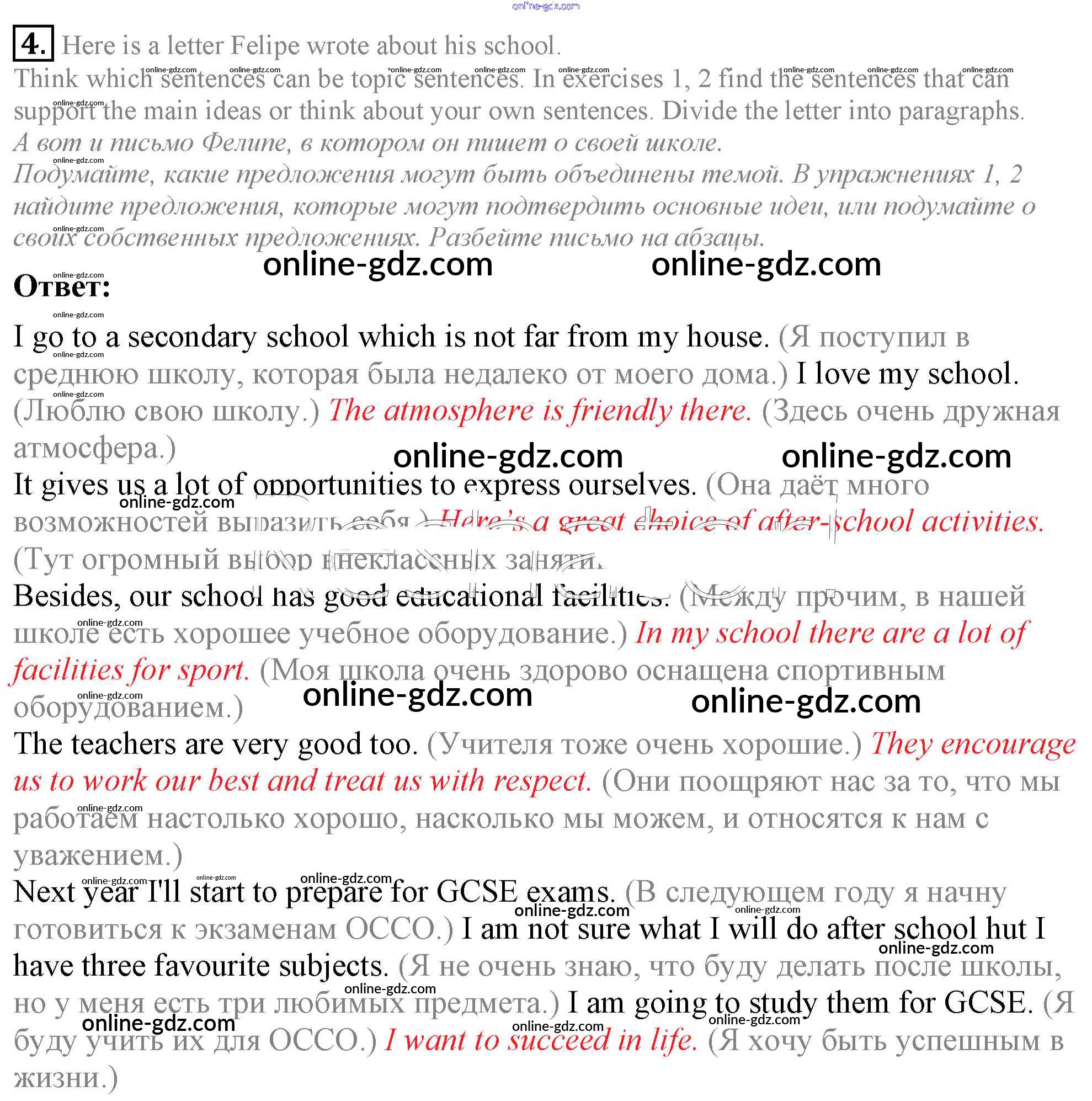 Готовые домашние задания по Английскому языку за 9 класс Учебник Кузовлев, Лапа УМК 2015 - Урок 8 Unit 4. What school do you go to? 4