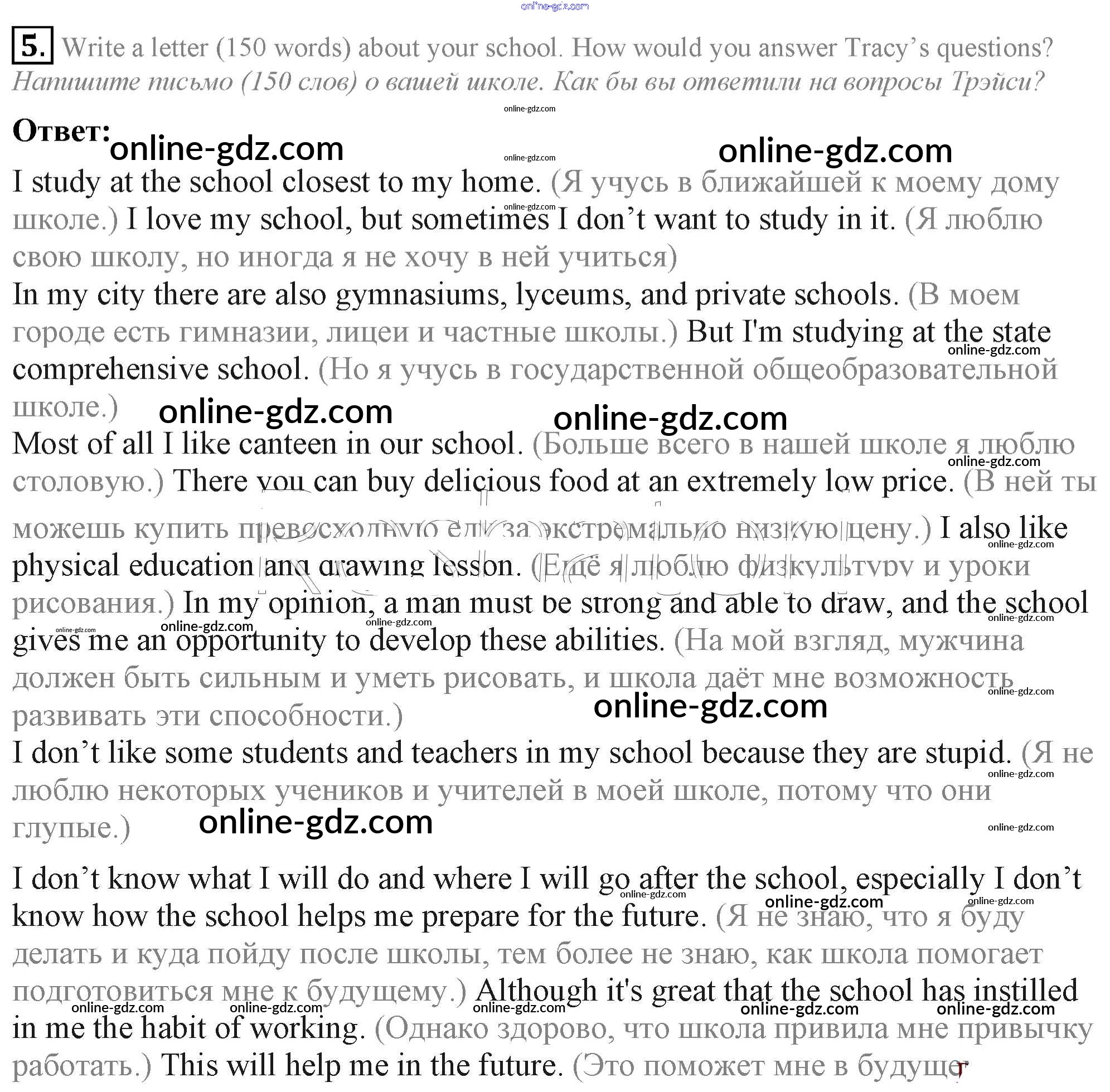 Готовые домашние задания по Английскому языку за 9 класс Учебник Кузовлев, Лапа УМК 2015 - Урок 8 Unit 4. What school do you go to? 5