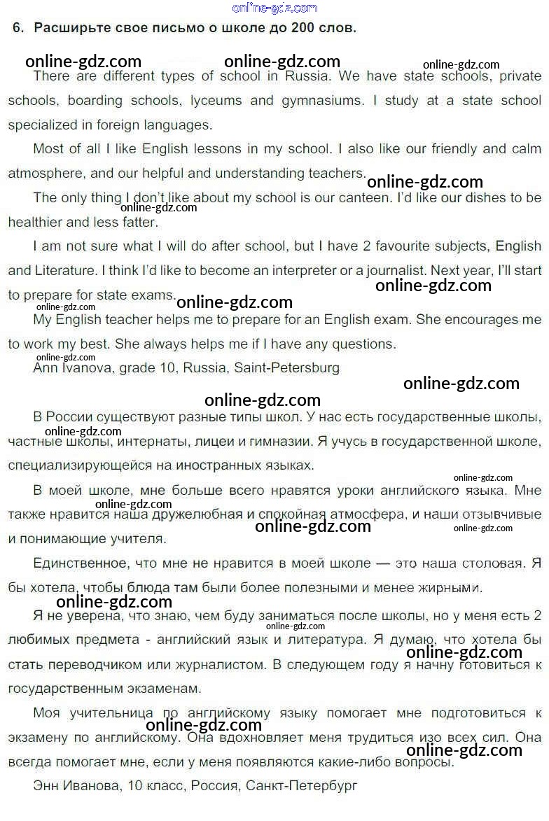 Готовые домашние задания по Английскому языку за 9 класс Учебник Кузовлев, Лапа УМК 2015 - Урок 8 Unit 4. What school do you go to? 6