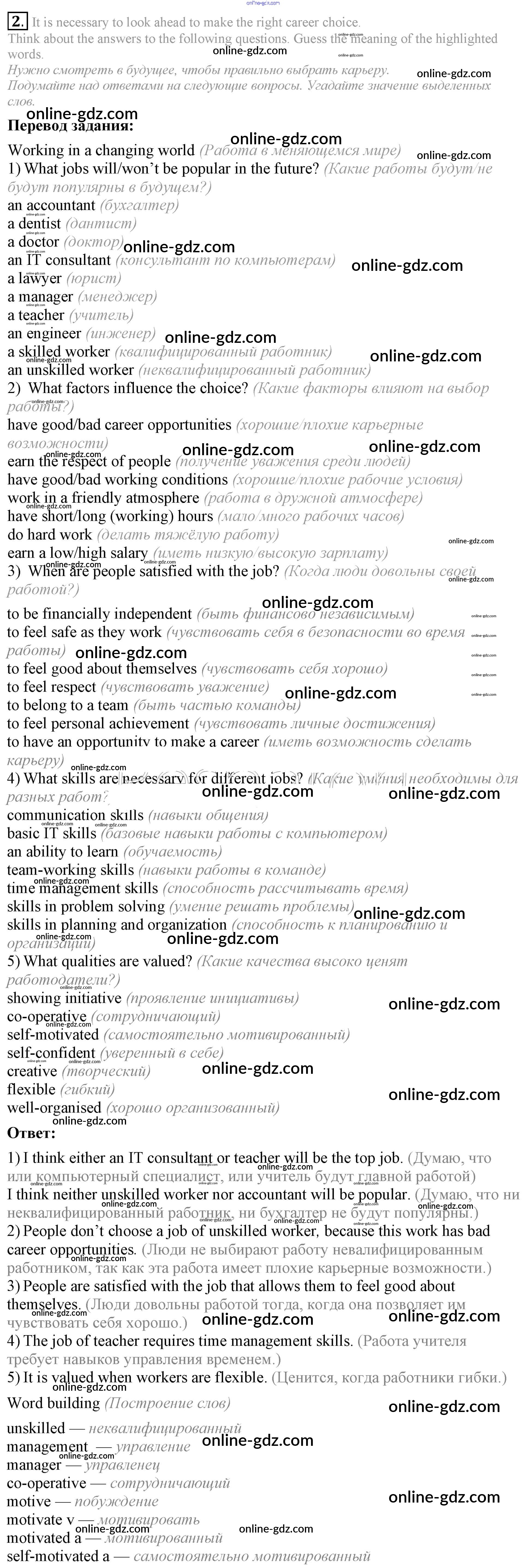 Готовые домашние задания по Английскому языку за 9 класс Учебник Кузовлев, Лапа УМК 2015 - Урок 1 Unit 5. School — what's next? 2