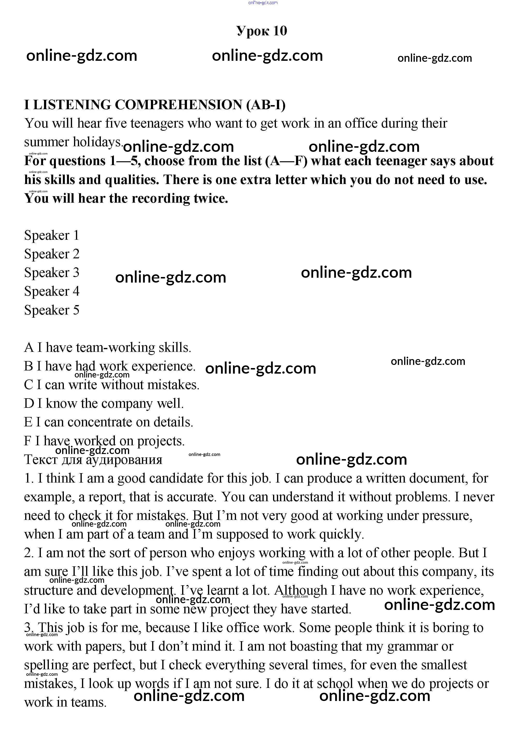 Готовые домашние задания по Английскому языку за 9 класс Учебник Кузовлев, Лапа УМК 2015 - Урок 10 Unit 5. School — what's next? 1