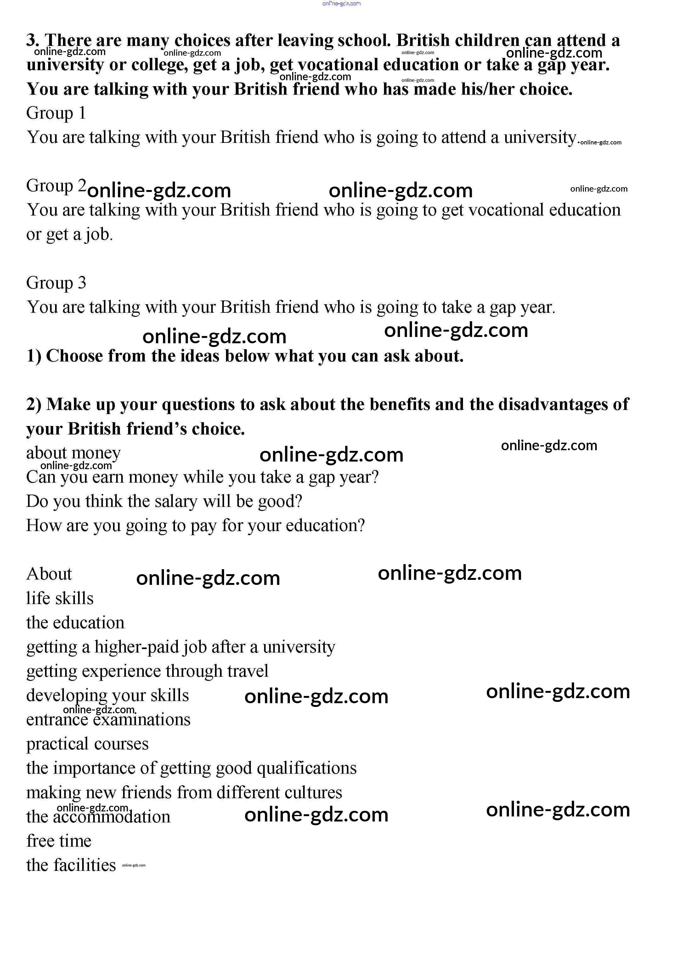 Готовые домашние задания по Английскому языку за 9 класс Учебник Кузовлев, Лапа УМК 2015 - Урок 8 Unit 5. School — what's next? 3