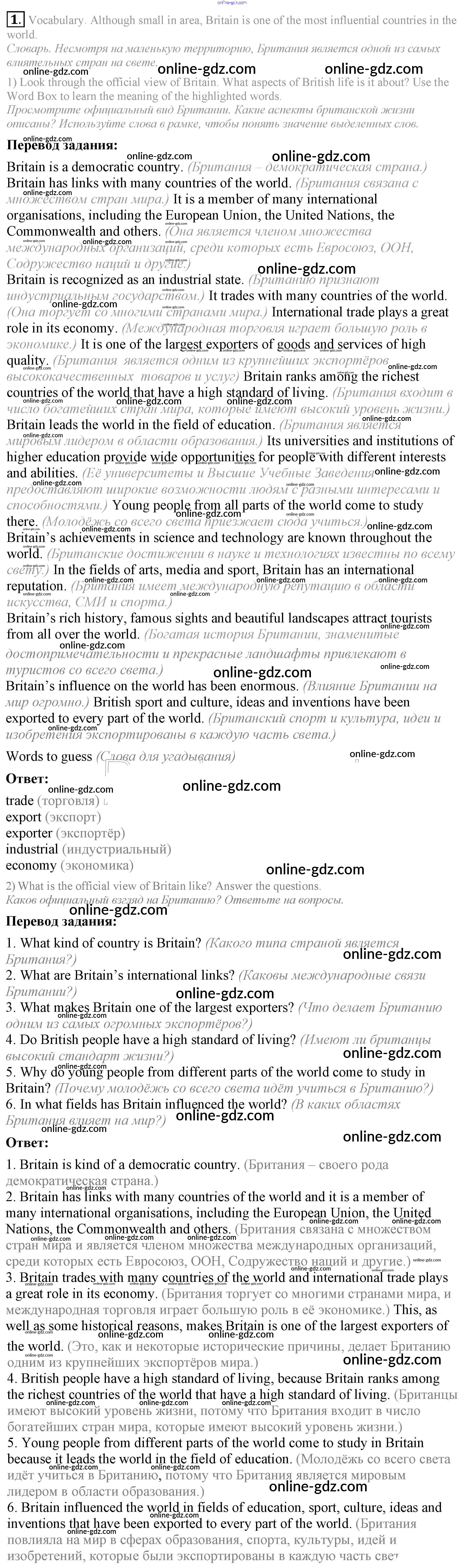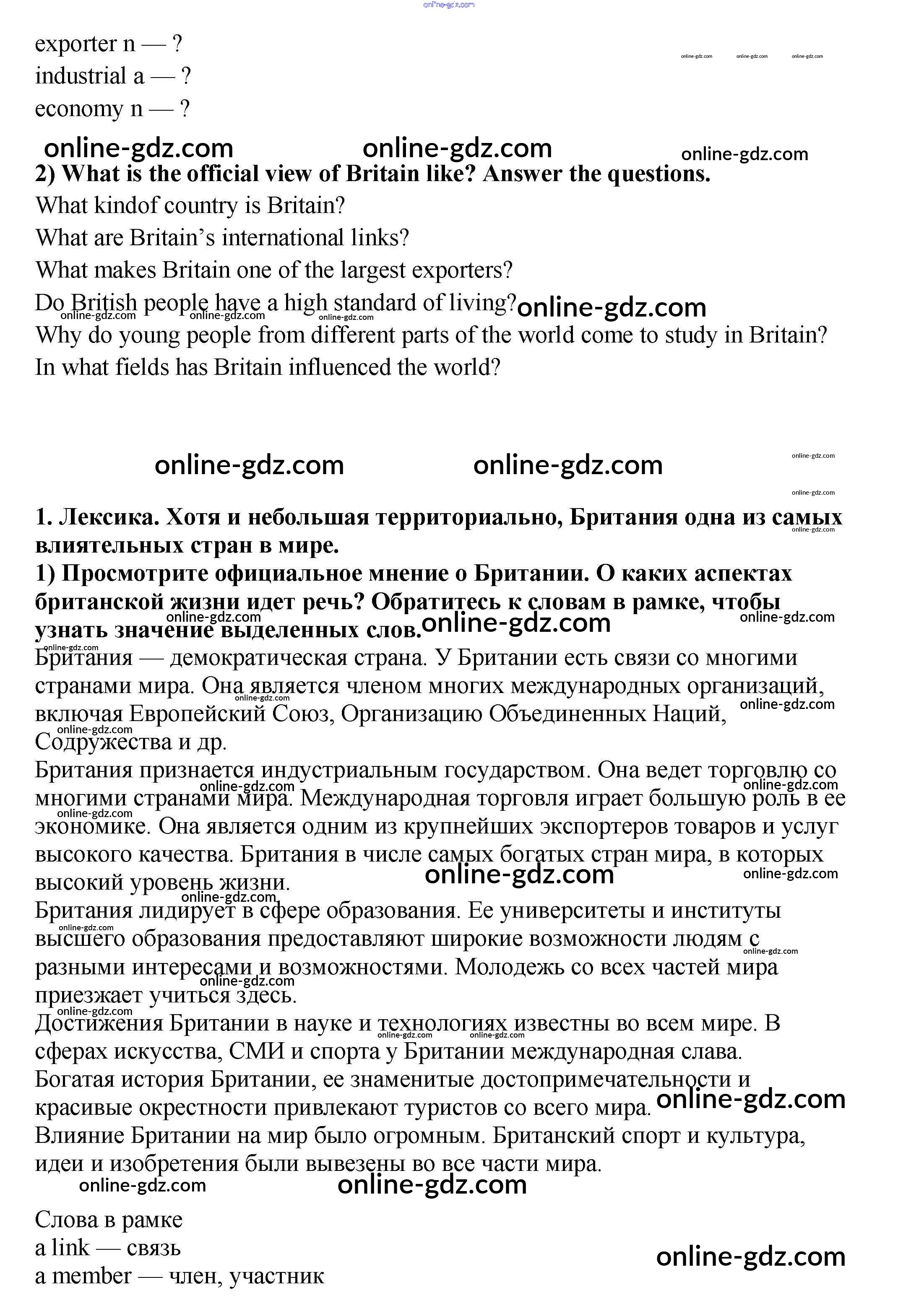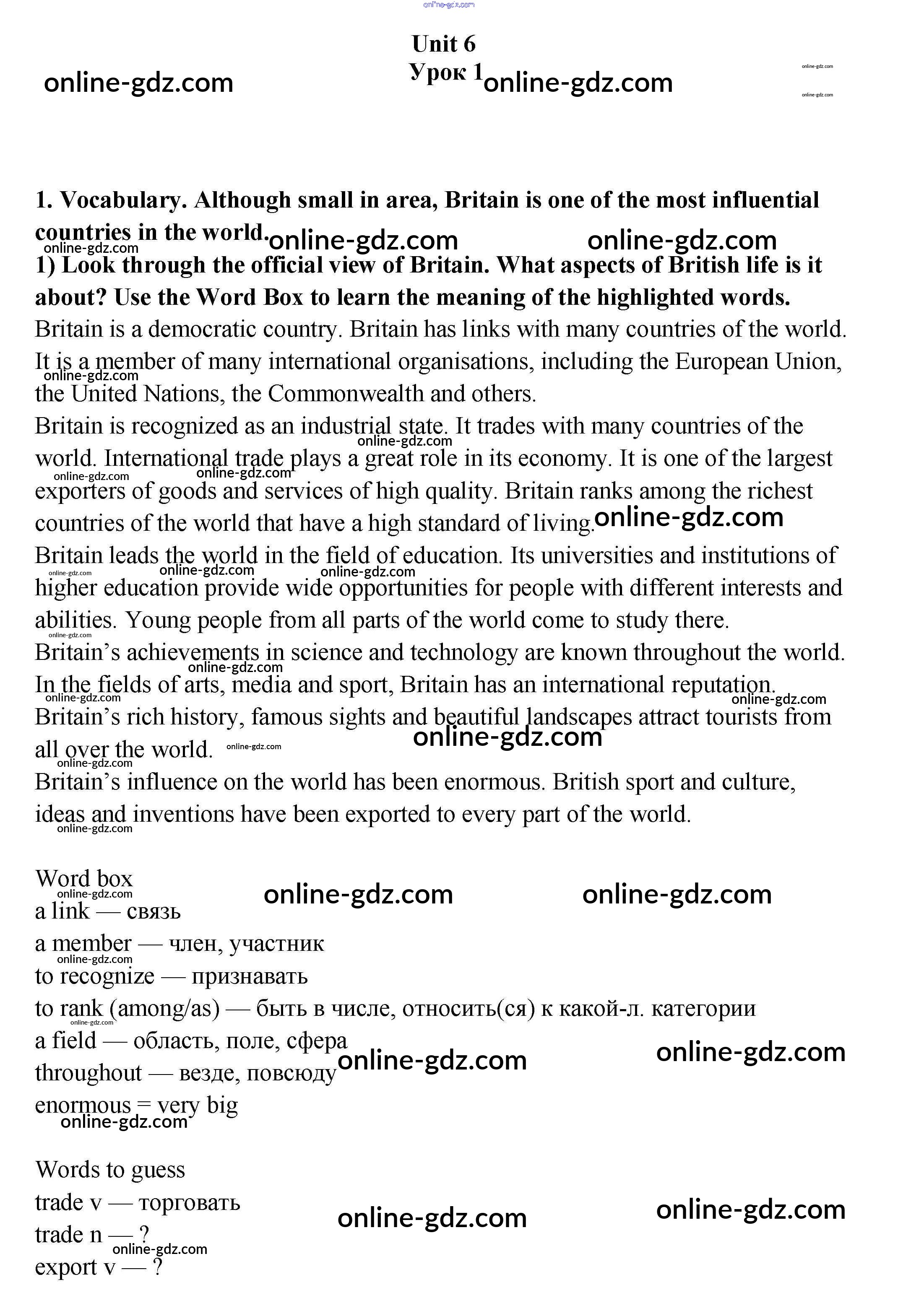 Готовые домашние задания по Английскому языку за 9 класс Учебник Кузовлев, Лапа УМК 2015 - Урок 1 Unit 6. My country in the world 1