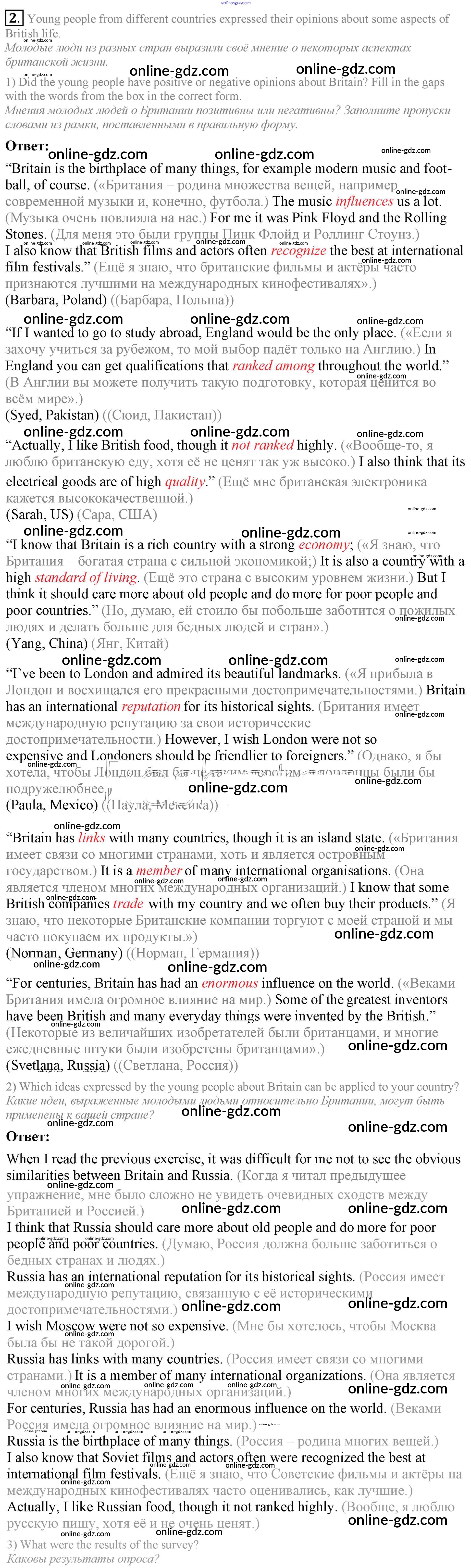 Готовые домашние задания по Английскому языку за 9 класс Учебник Кузовлев, Лапа УМК 2015 - Урок 1 Unit 6. My country in the world 2