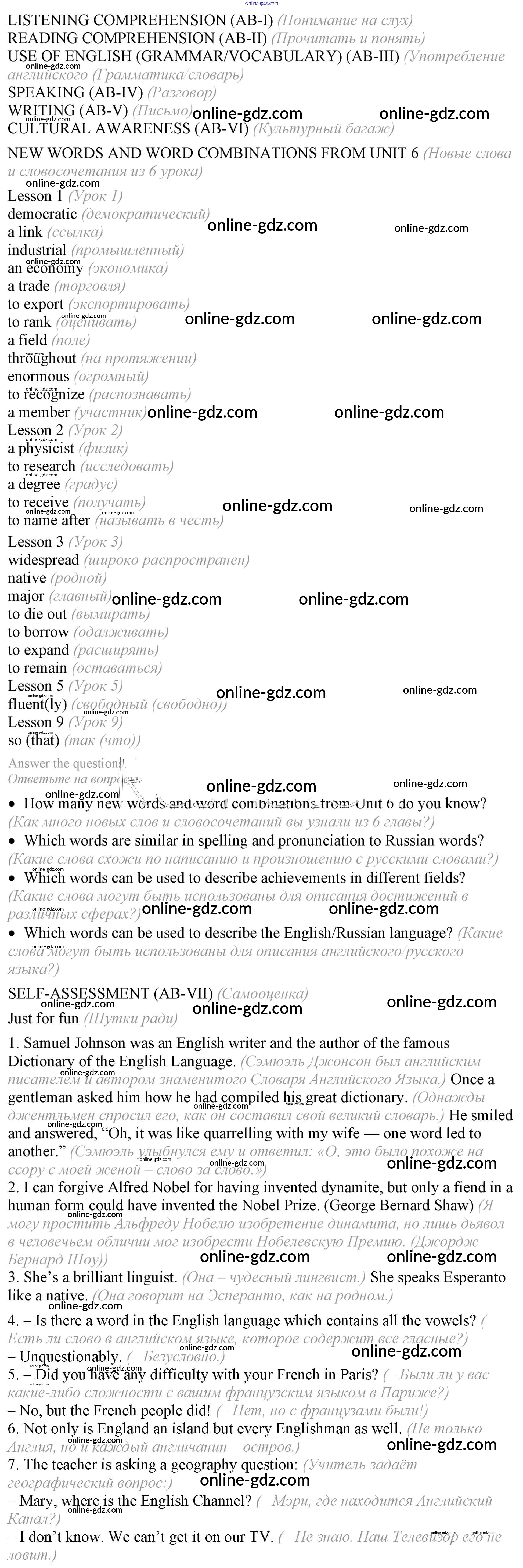 Готовые домашние задания по Английскому языку за 9 класс Учебник Кузовлев, Лапа УМК 2015 - Урок 11 Unit 6. My country in the world 1