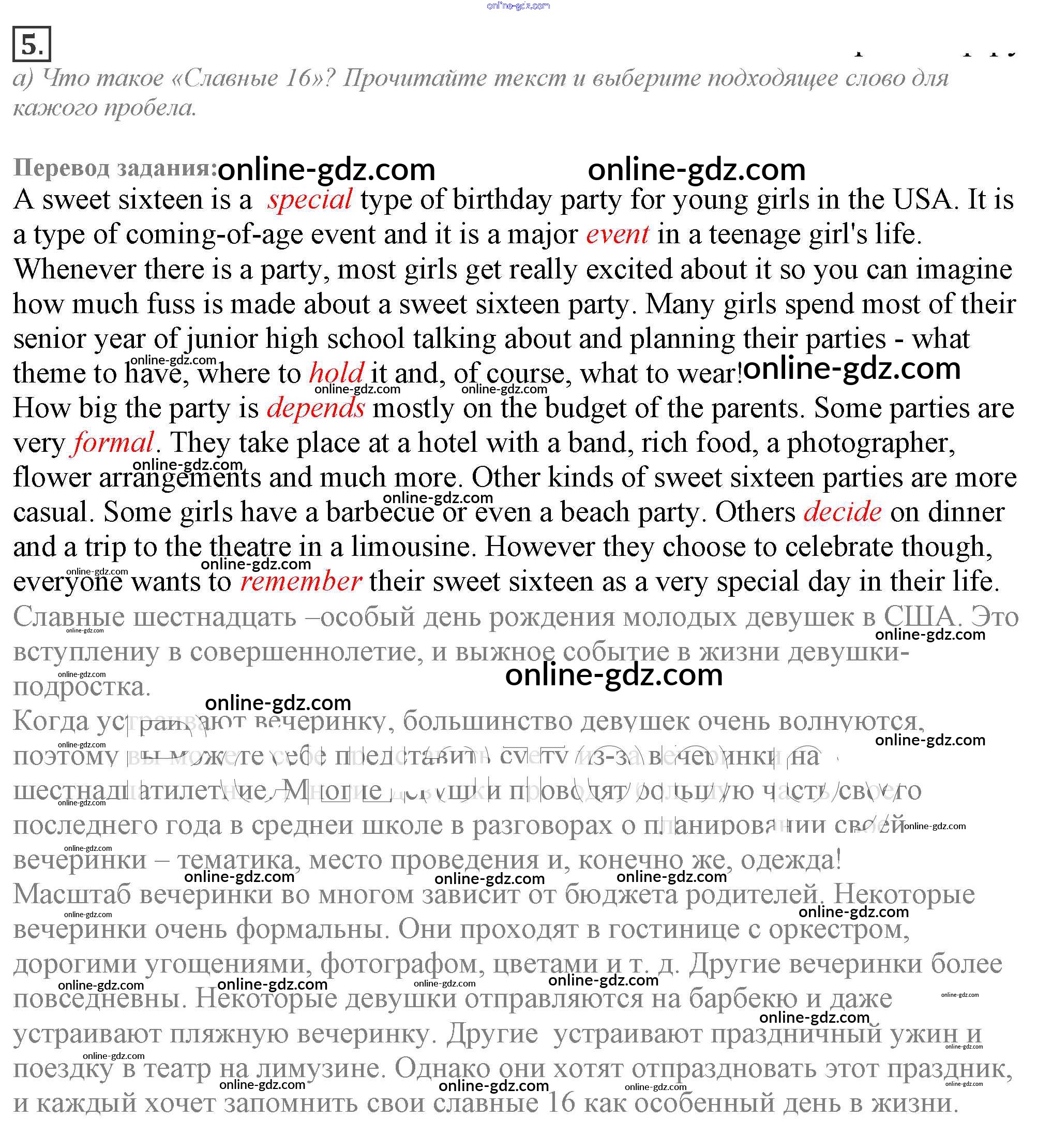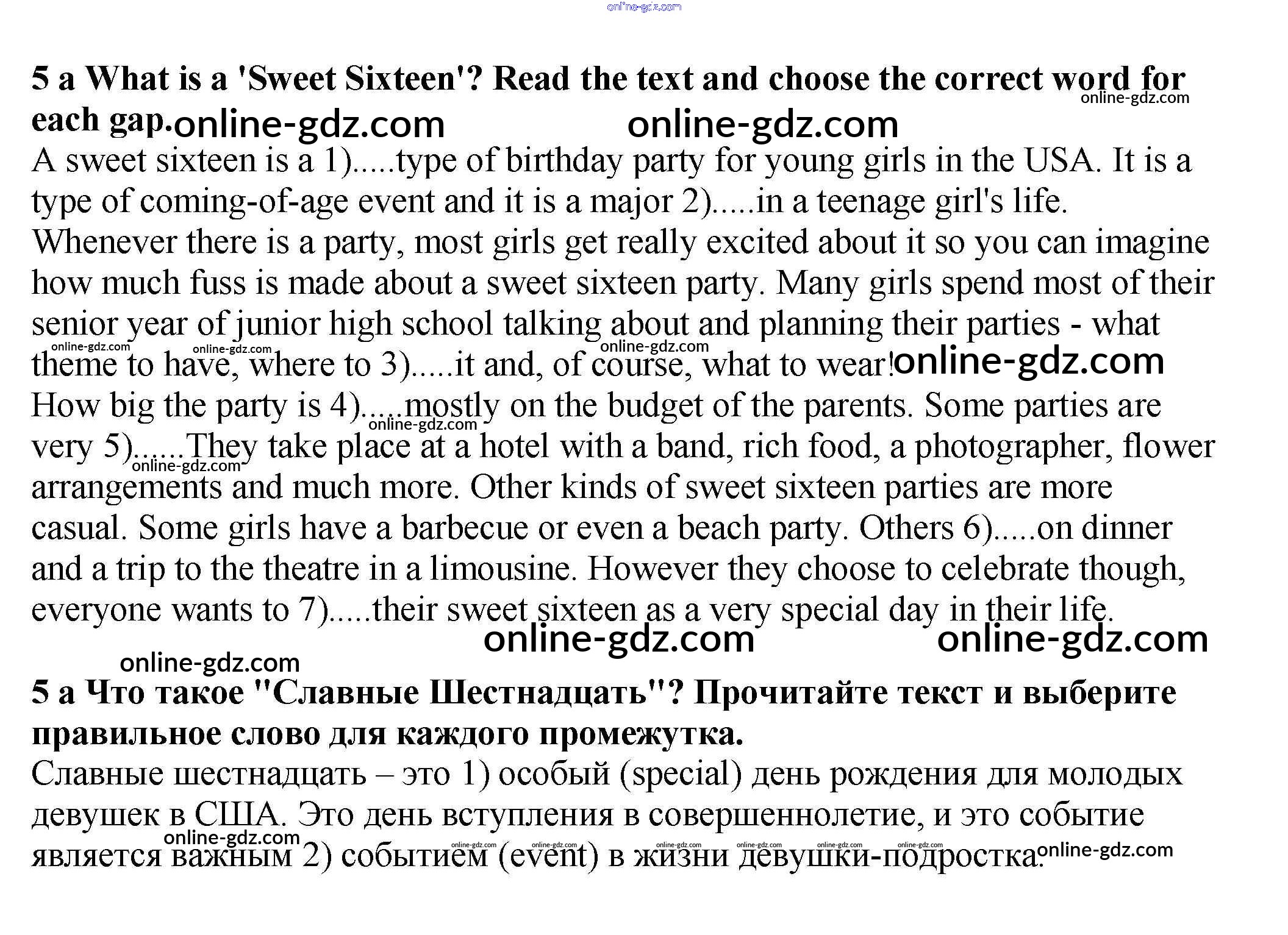 Готовые домашние задания по Английскому языку за 9 класс Учебник Ваулина, Эванс Spotlight 2010 - Часть 1d Модуль 1 5a