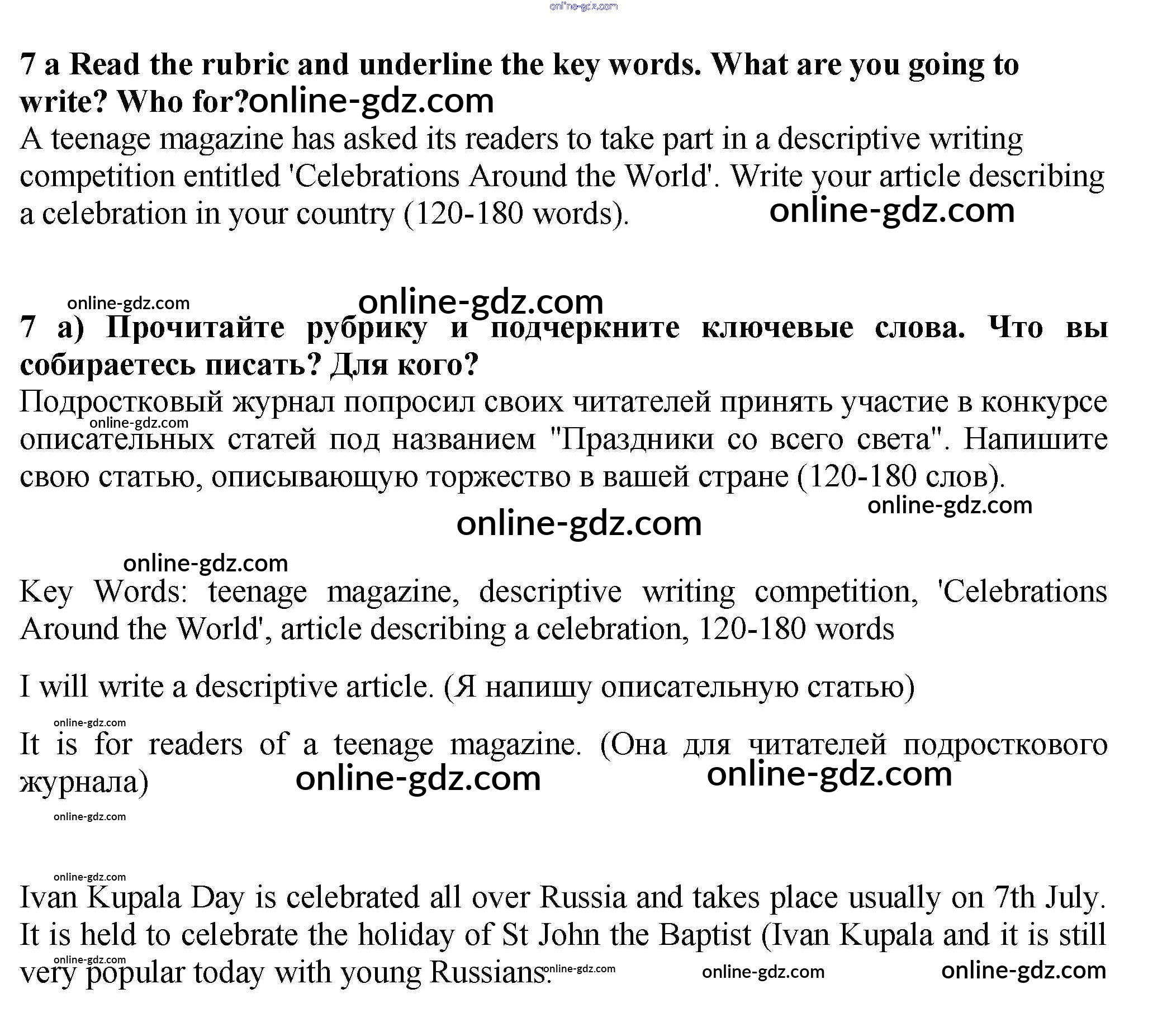 Готовые домашние задания по Английскому языку за 9 класс Учебник Ваулина, Эванс Spotlight 2010 - Часть 1e Модуль 1 7a