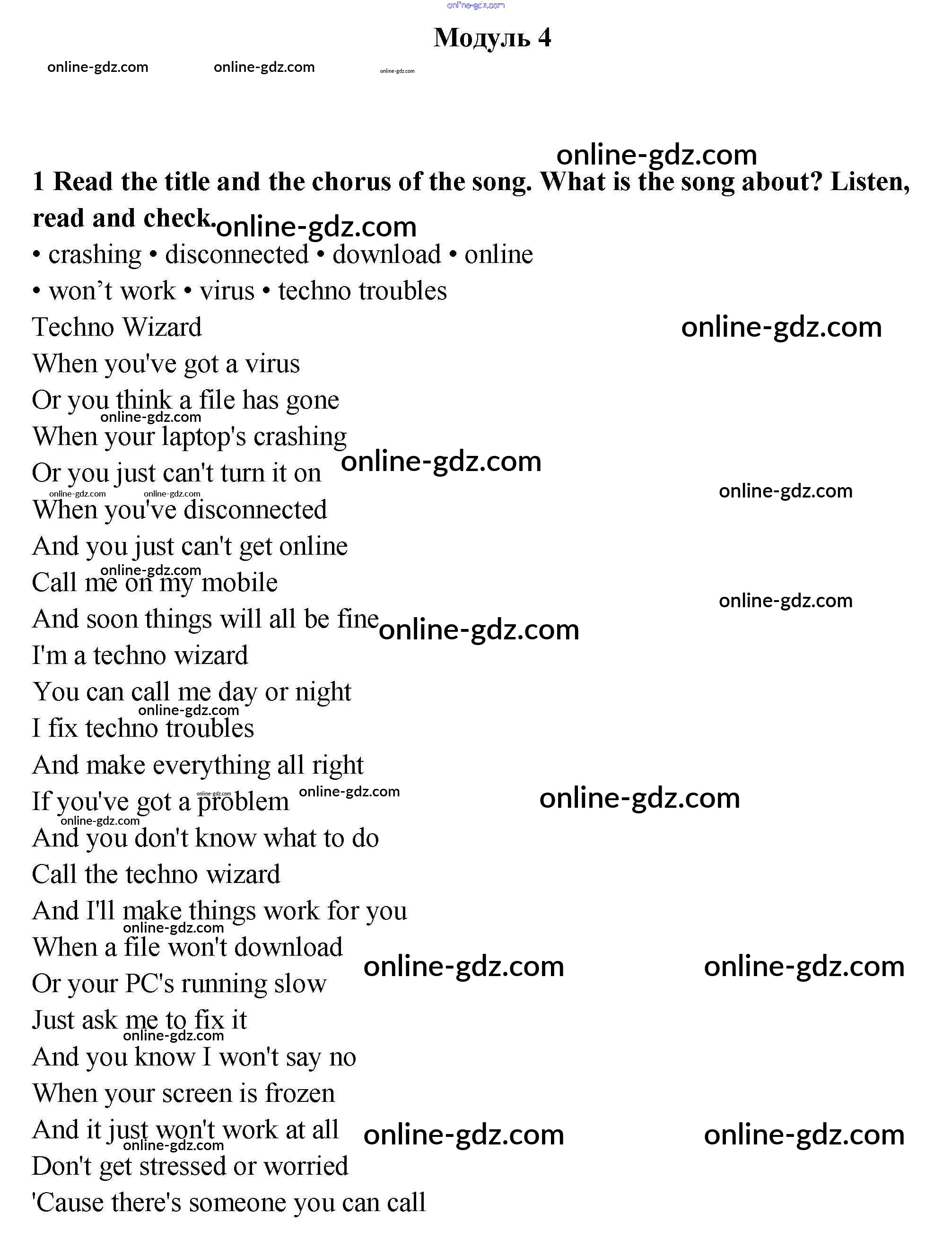 Готовые домашние задания по Английскому языку за 9 класс Учебник Ваулина, Эванс Spotlight 2010 - Модуль 4 Songs Sheets 1