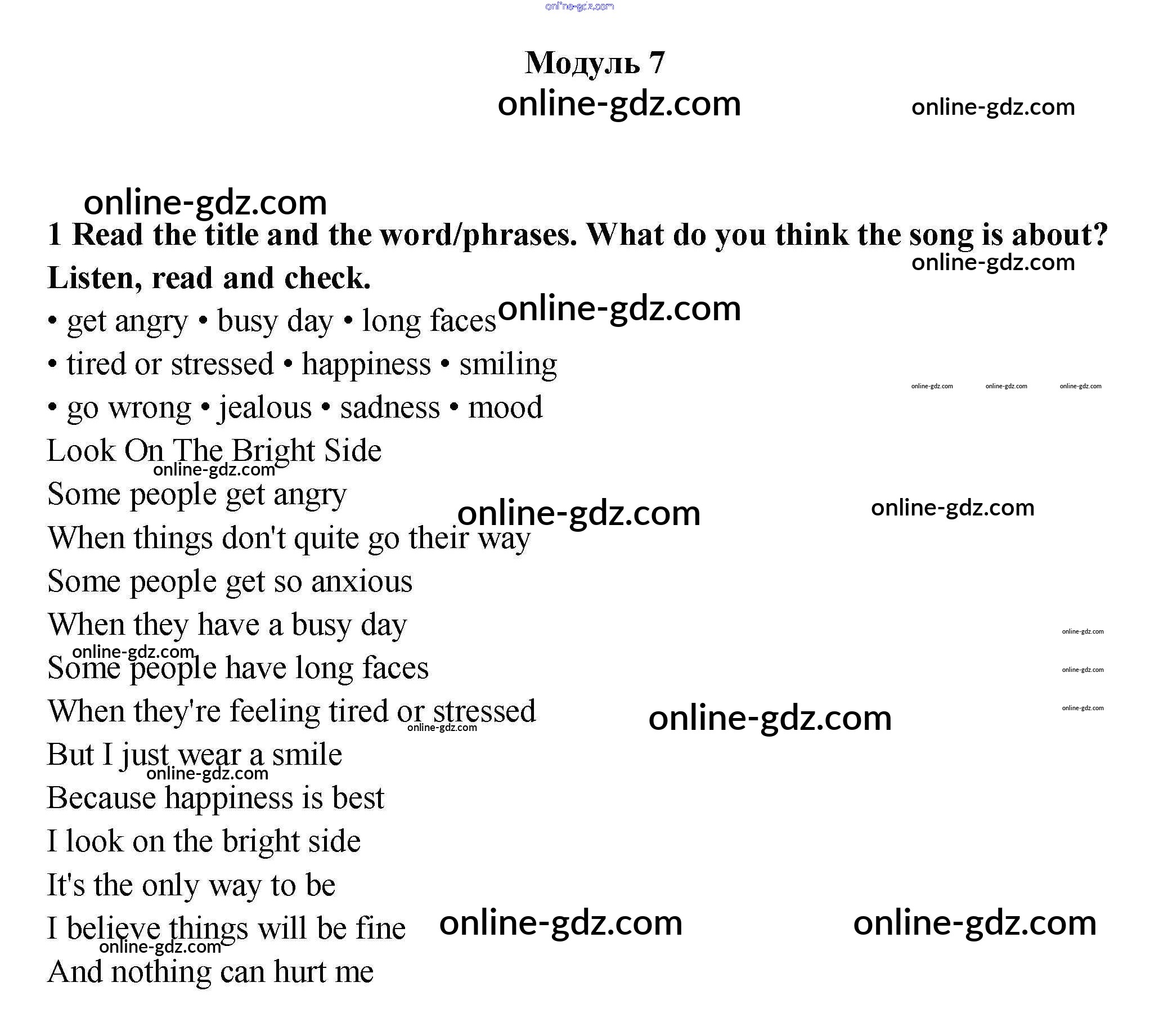 Готовые домашние задания по Английскому языку за 9 класс Учебник Ваулина, Эванс Spotlight 2010 - Модуль 7 Songs Sheets 1
