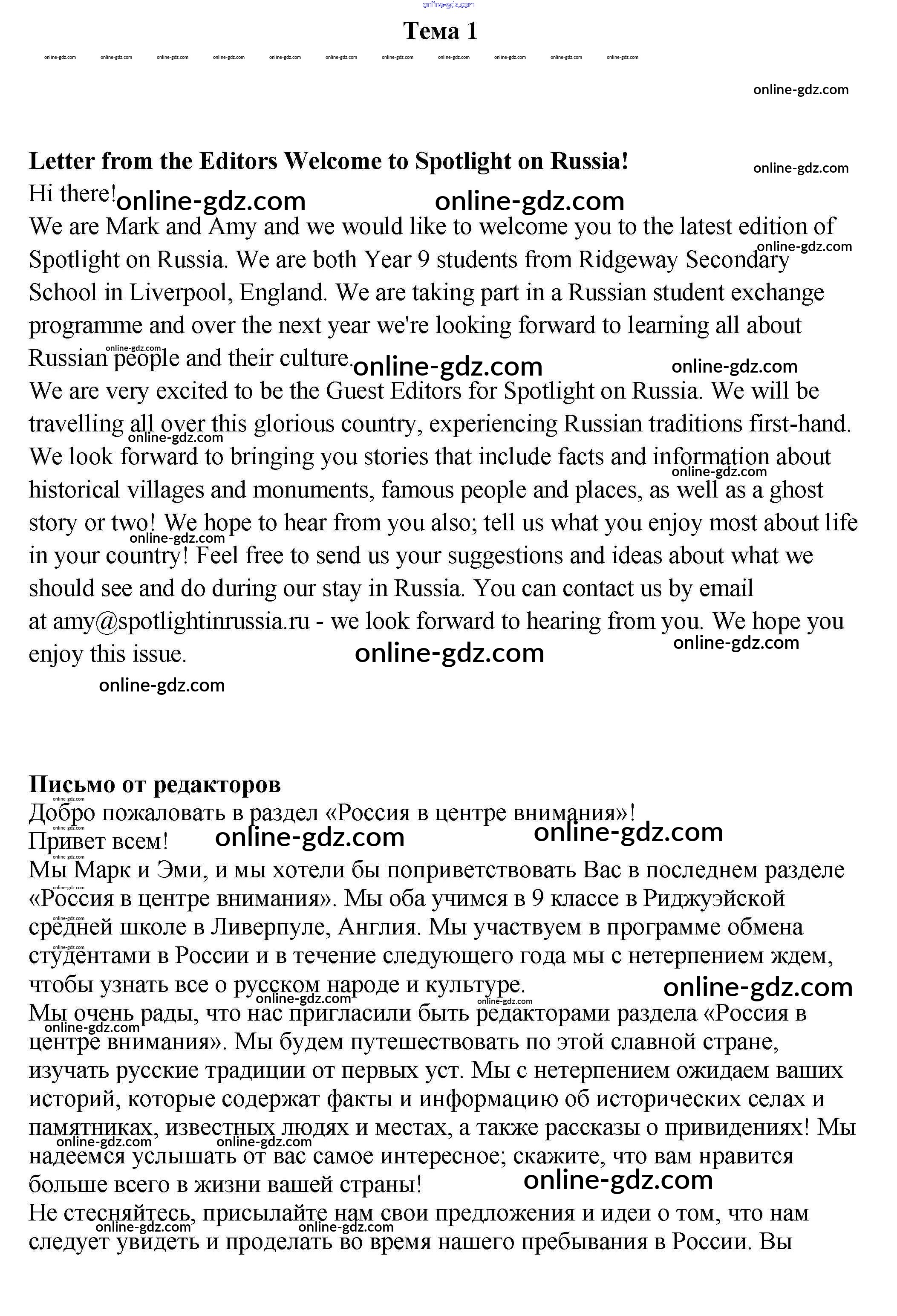 Готовые домашние задания по Английскому языку за 9 класс Учебник Ваулина, Эванс Spotlight 2010 - Spotlights on Russia. Темы 1