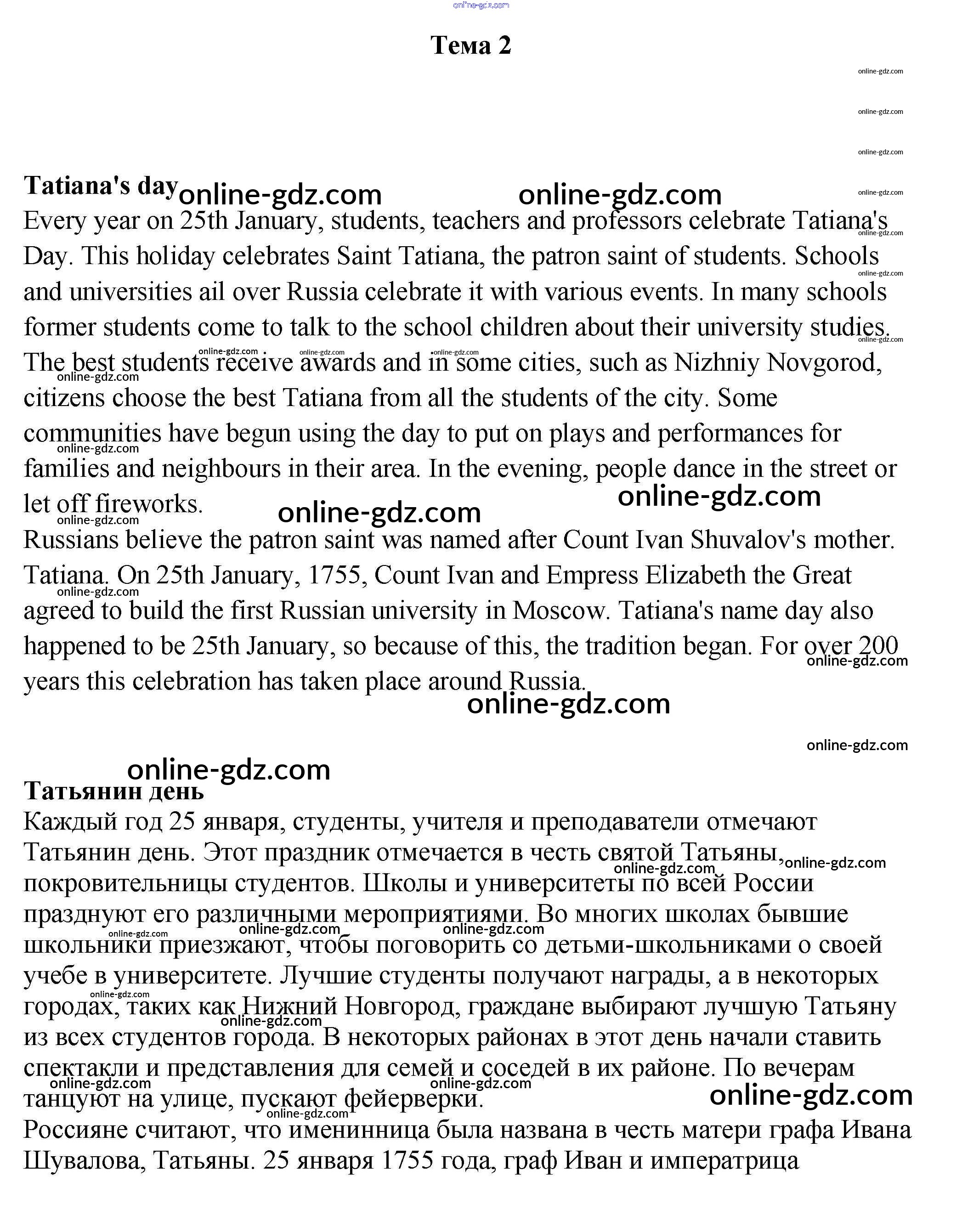 Готовые домашние задания по Английскому языку за 9 класс Учебник Ваулина, Эванс Spotlight 2010 - Spotlights on Russia. Темы 2