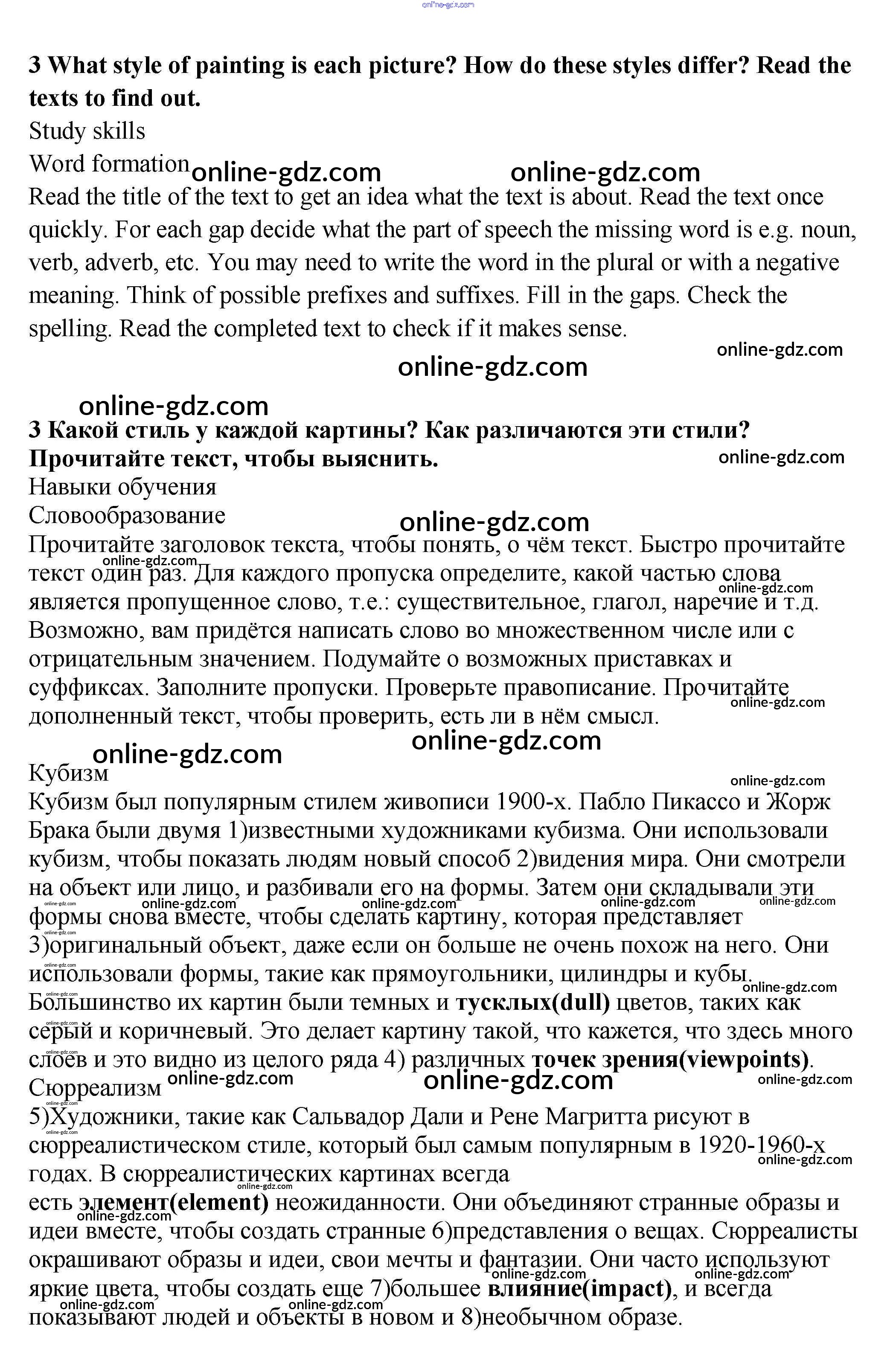 Готовые домашние задания по Английскому языку за 9 класс Учебник Ваулина, Эванс Spotlight 2010 - Accross the curriculum Art&Design Модуль 3 3