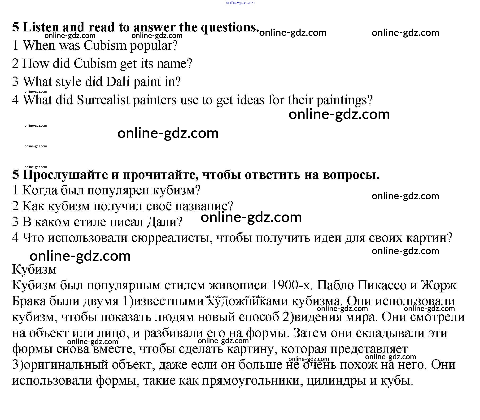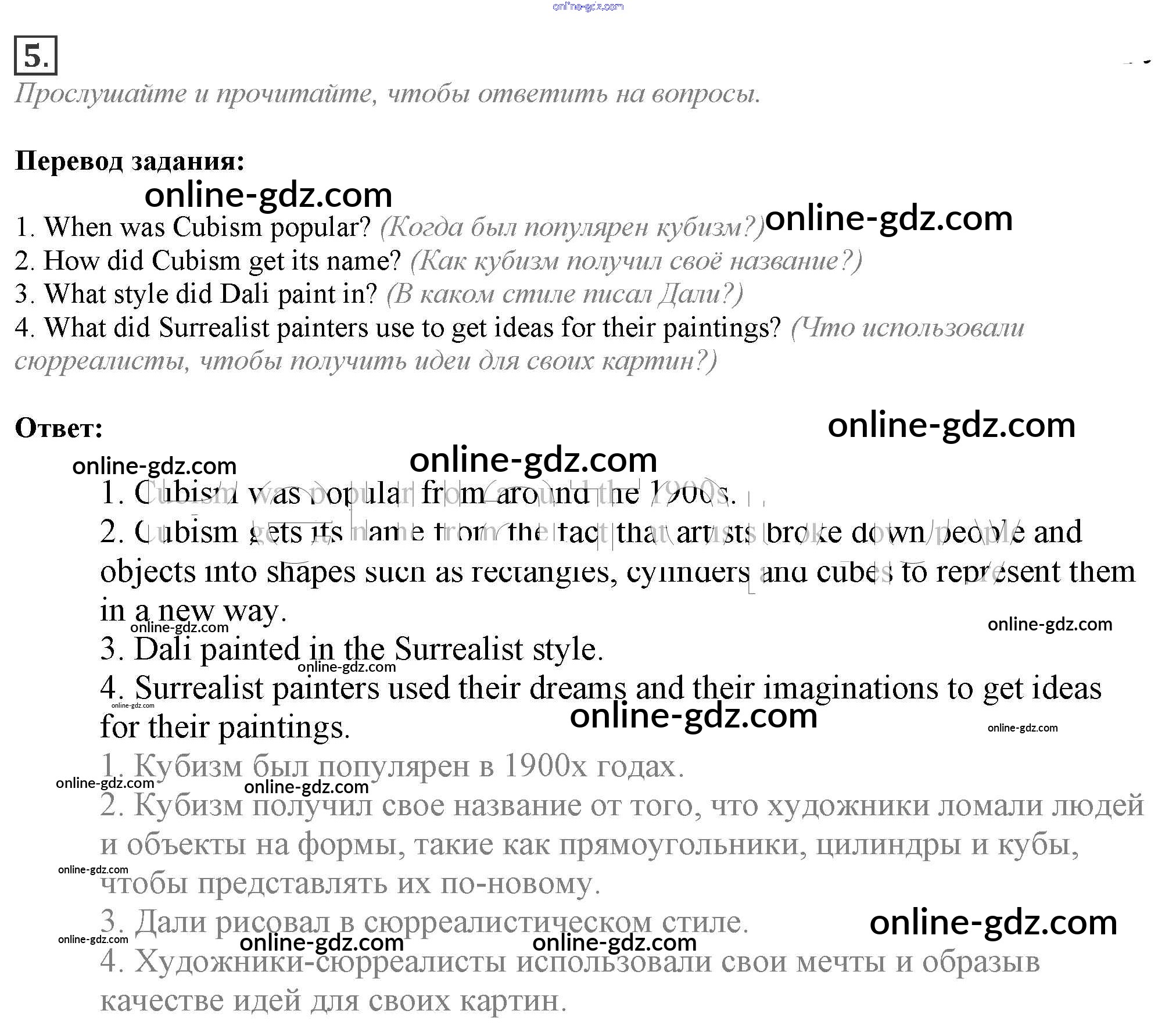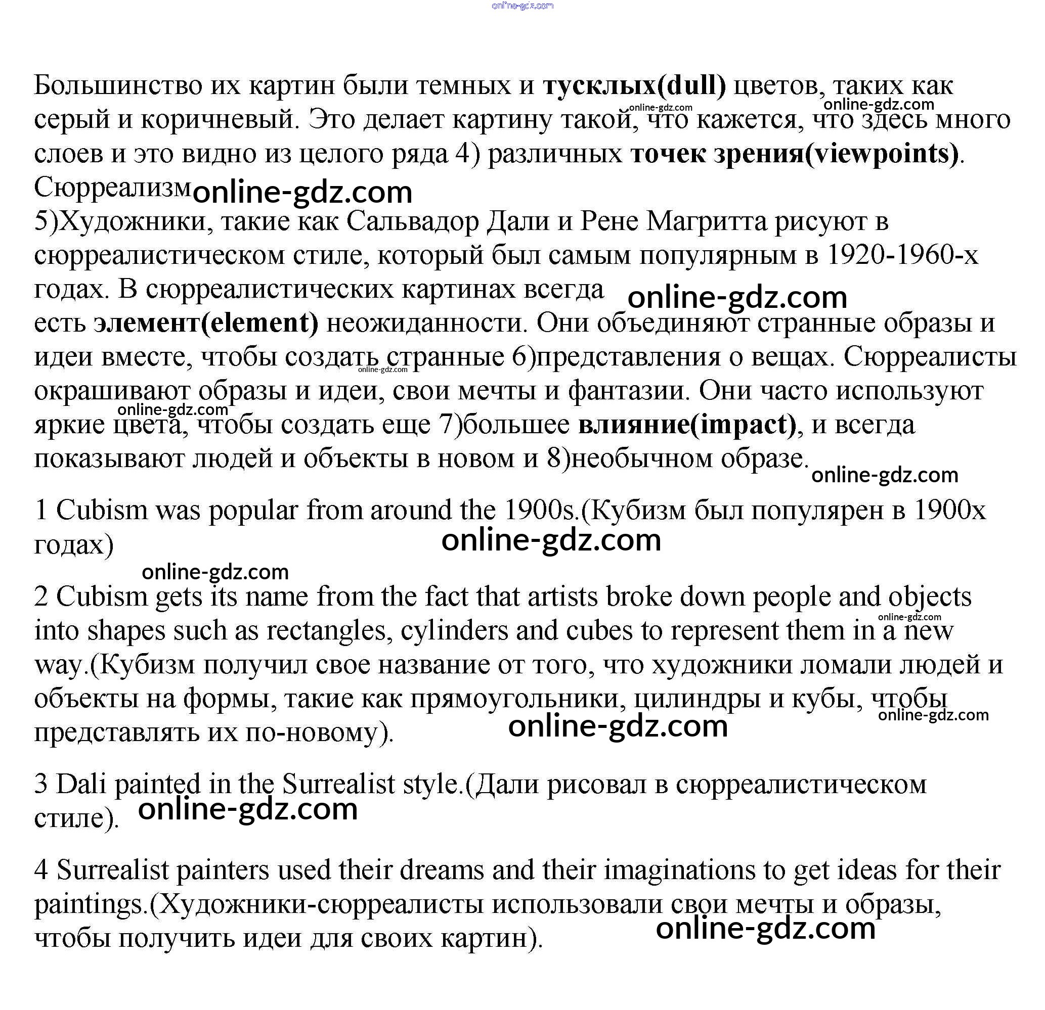 Готовые домашние задания по Английскому языку за 9 класс Учебник Ваулина, Эванс Spotlight 2010 - Accross the curriculum Art&Design Модуль 3 5