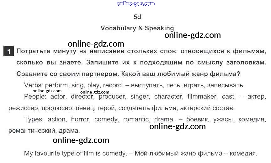 Готовые домашние задания по Английскому языку за 9 класс Учебник Ваулина, Эванс Spotlight 2010 - Часть 5d Модуль 5 1