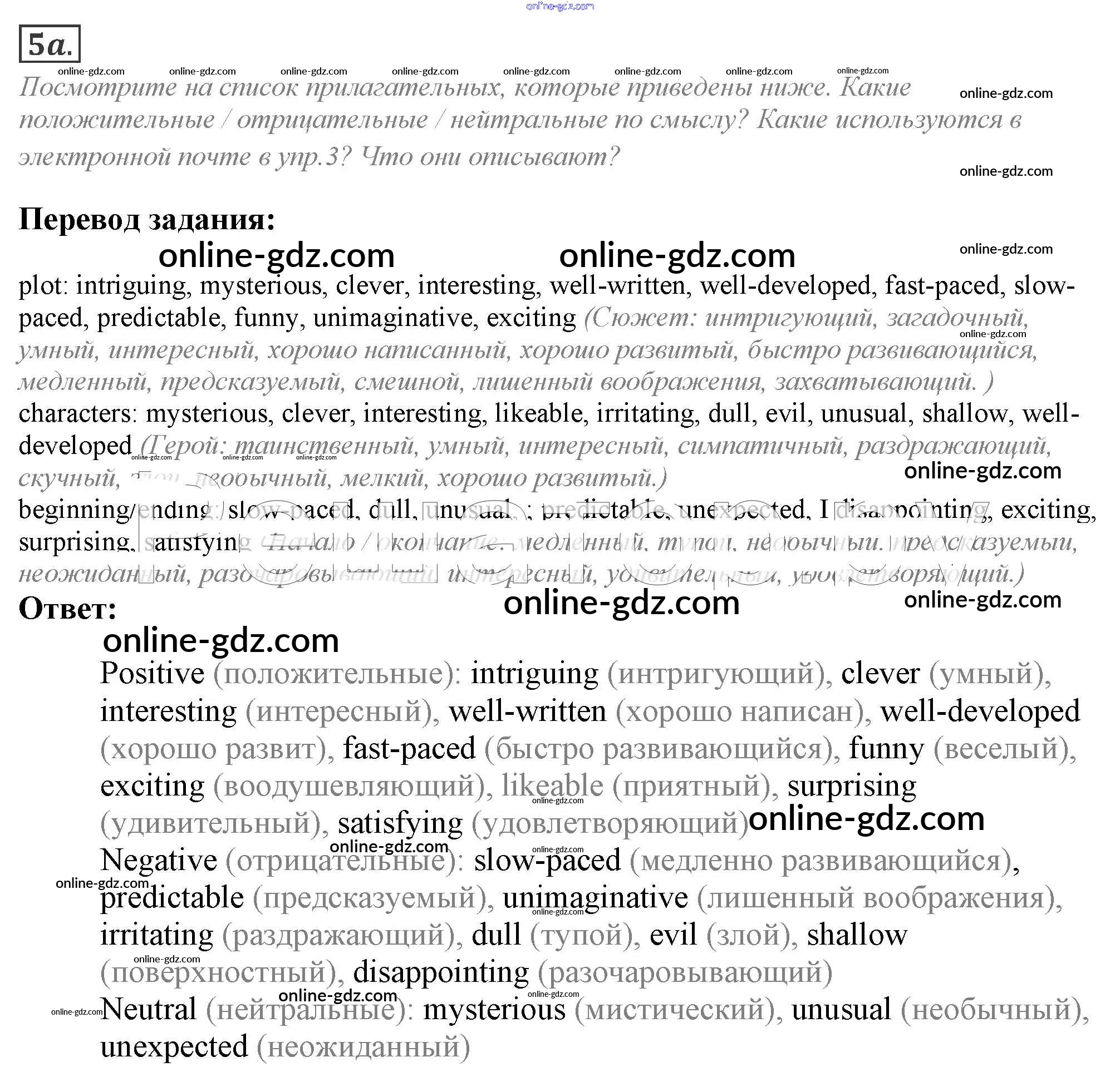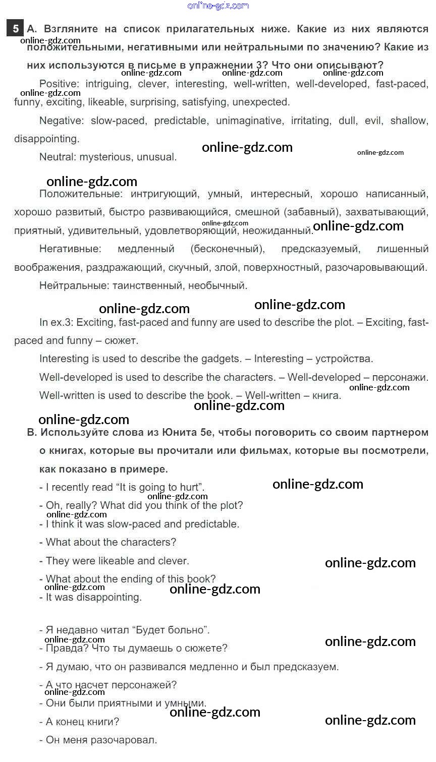 Готовые домашние задания по Английскому языку за 9 класс Учебник Ваулина, Эванс Spotlight 2010 - Часть 5e Модуль 5 5a