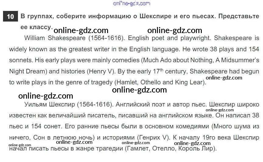 Готовые домашние задания по Английскому языку за 9 класс Учебник Ваулина, Эванс Spotlight 2010 - Accross the curriculum Literature Модуль 5 10