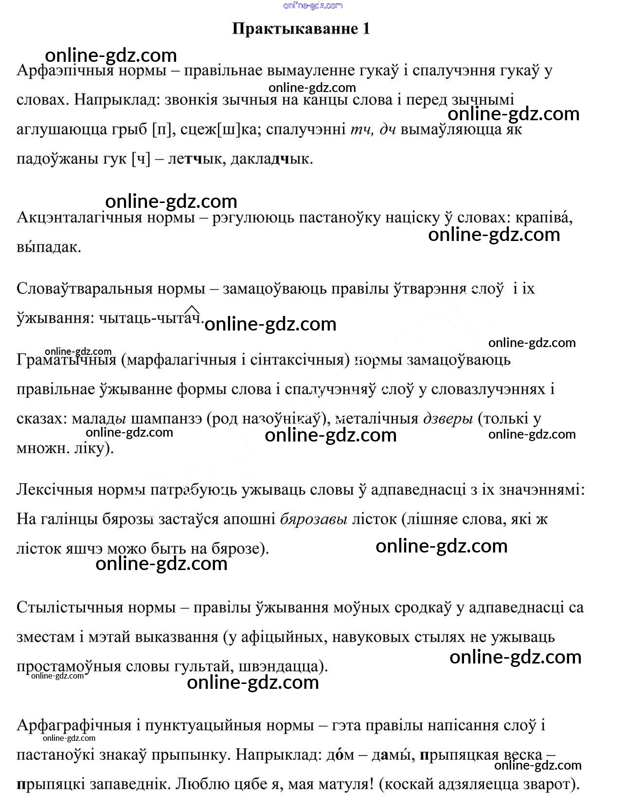 Готовые домашние задания по Белорусскому языку за 7 класс Учебник Валочка, Язерская 2020 - Практыкаванні 1