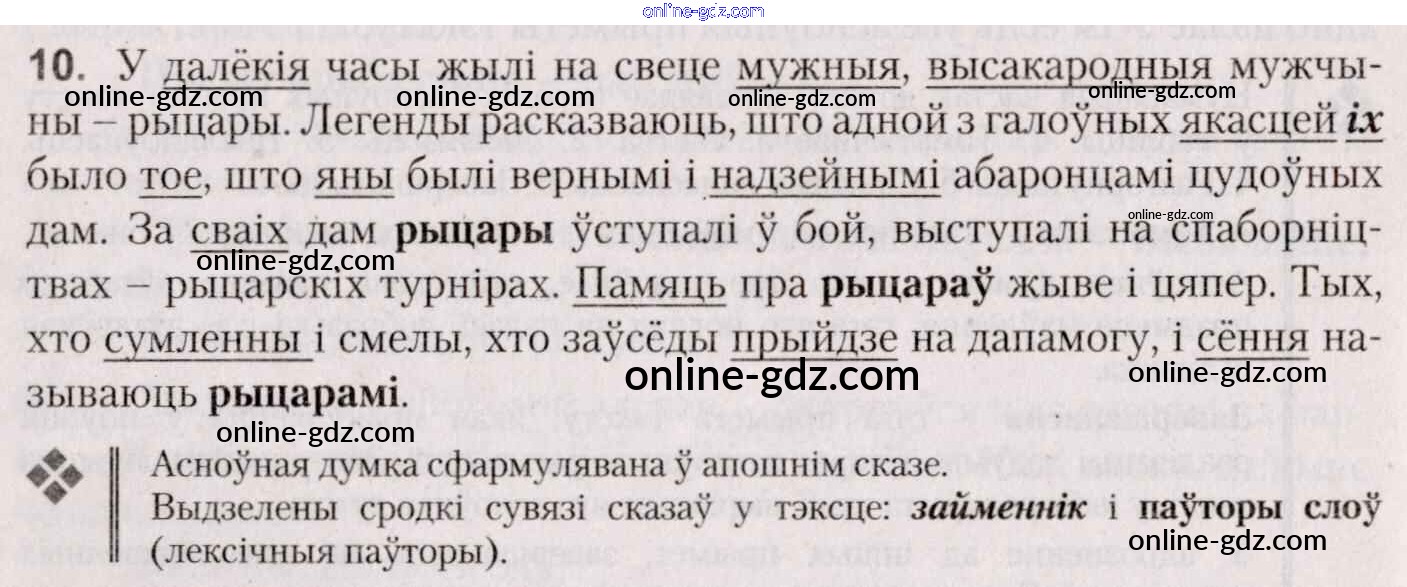 Готовые домашние задания по Белорусскому языку за 7 класс Учебник Валочка, Язерская 2020 - Практыкаванні 10