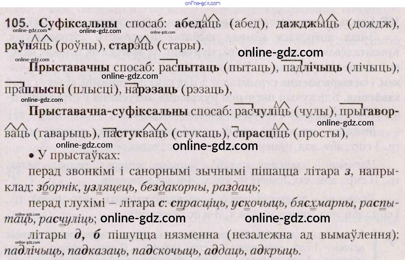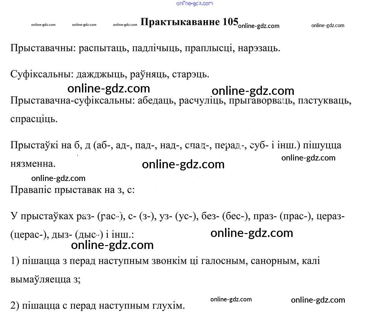 Готовые домашние задания по Белорусскому языку за 7 класс Учебник Валочка, Язерская 2020 - Практыкаванні 105